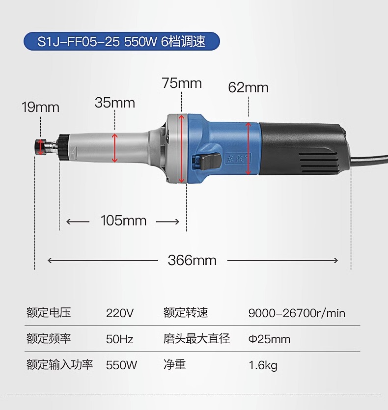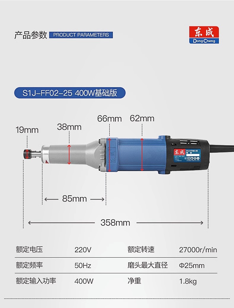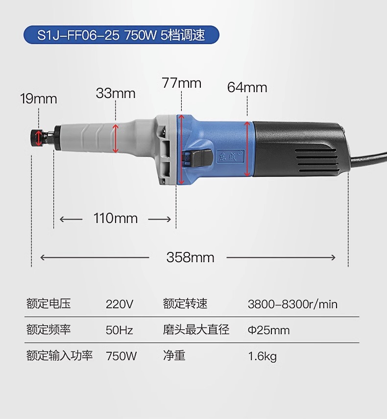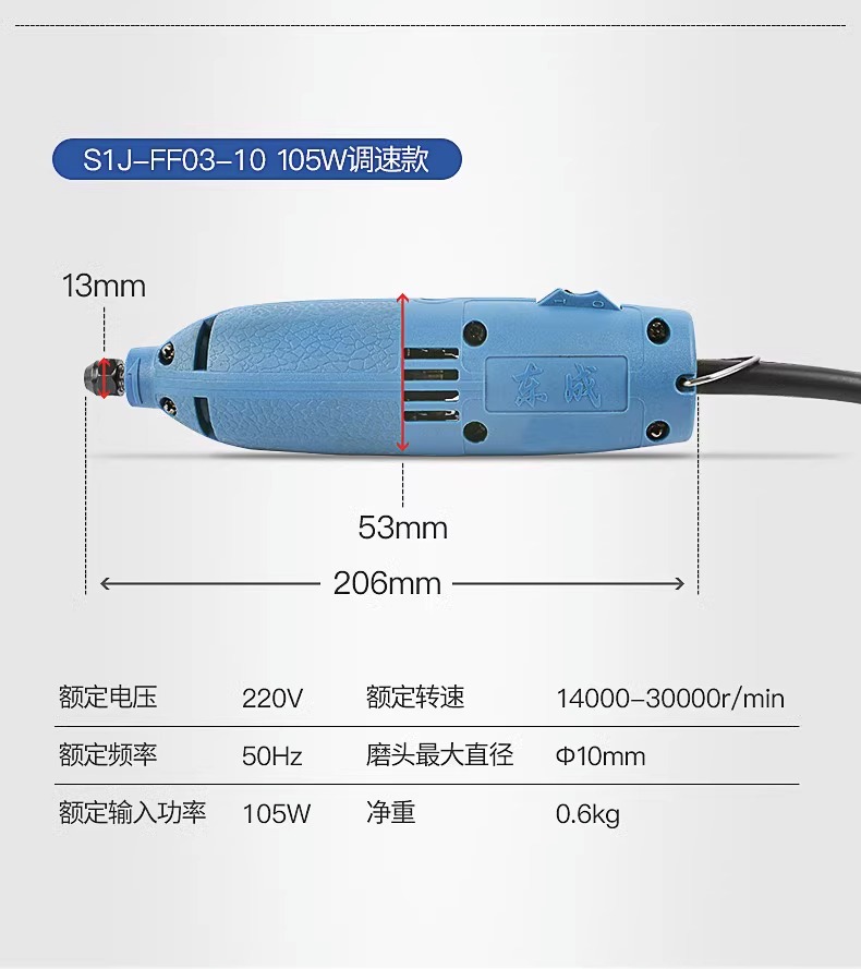 Molino eléctrico de Dongcheng Molino recto eléctrico de mano pequeña herramienta de molienda interna Jade escultura artefacto de pulido