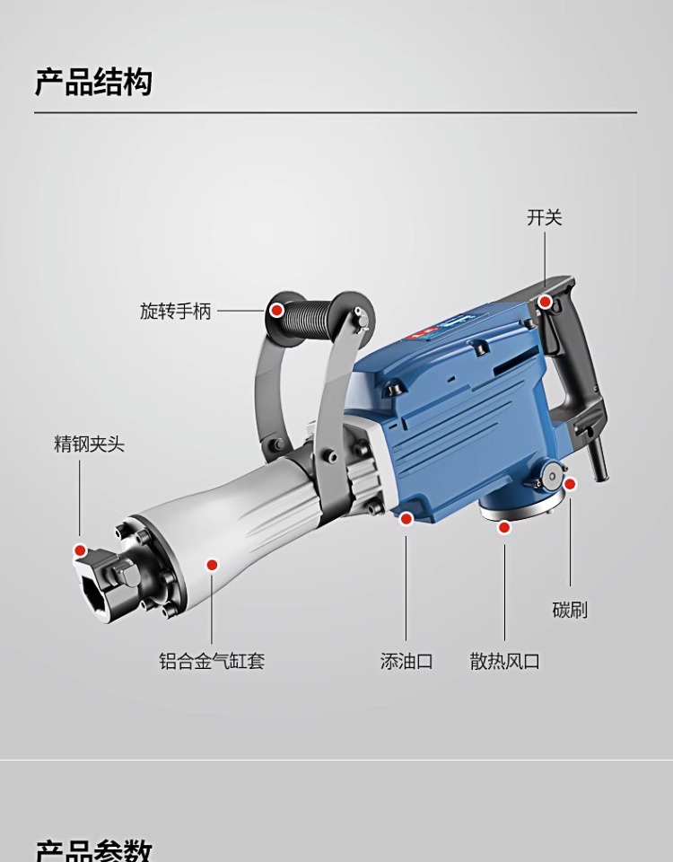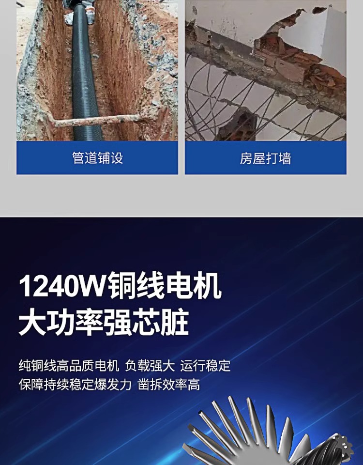 Dongcheng gran picadora eléctrica de hormigón 65 picadora eléctrica de uso único de grado industrial de gran potencia profesional de ingeniería pesada picadora de hormigón