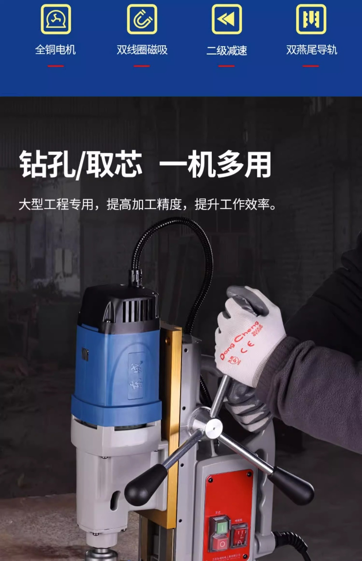 Dongcheng taladro de asiento magnético taladro de succión de hierro hueco taladro magnético de alta precisión taladro de núcleo taladro eléctrico de asiento magnético