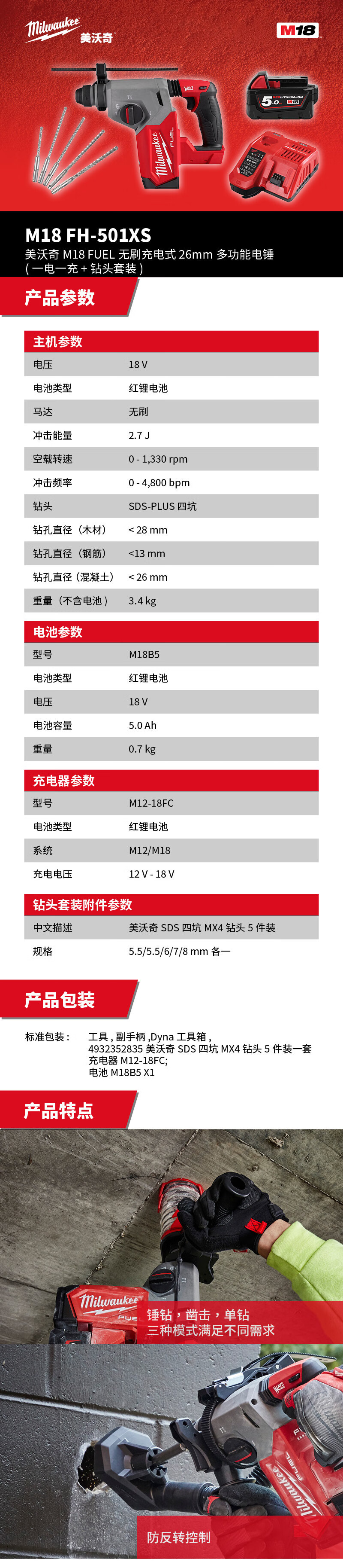 Miwachi Miwachi M18 FH - 501XS M18 FUEL cargado sin escobillas martillo eléctrico multifuncional de 26 mm (