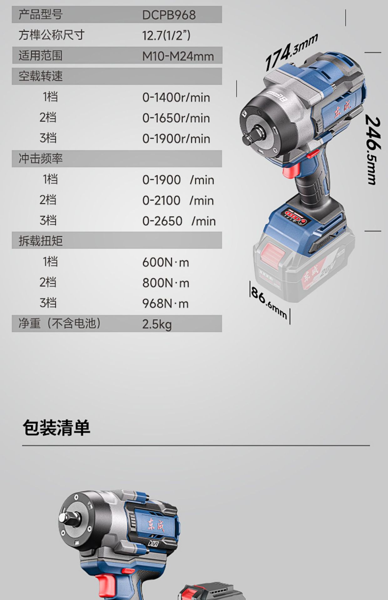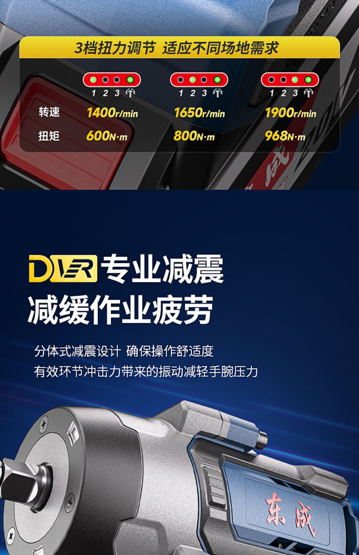 Dongcheng DCPB968 llave eléctrica sin escobillas carga de litio eléctrico gran torsión ingeniería de reparación de automóviles cañón de viento de impacto pesado