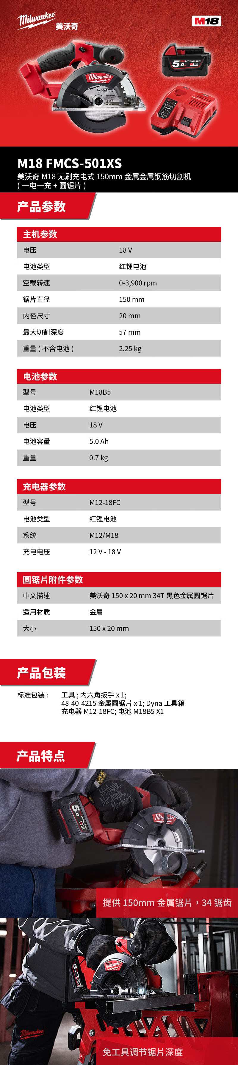 Miwachi Miwachi M18 FMCS - 501XS M18 recargable sin escobillas 150mm barra de acero metálica