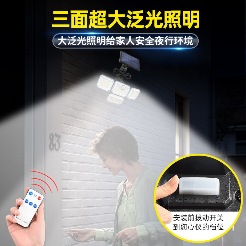 Lámpara de pared solar, lámpara de jardín al aire libre, hogar giratorio de cuatro cabezas, lámpara de jardín al aire libre impermeable, iluminación de inducción del cuerpo humano, farola