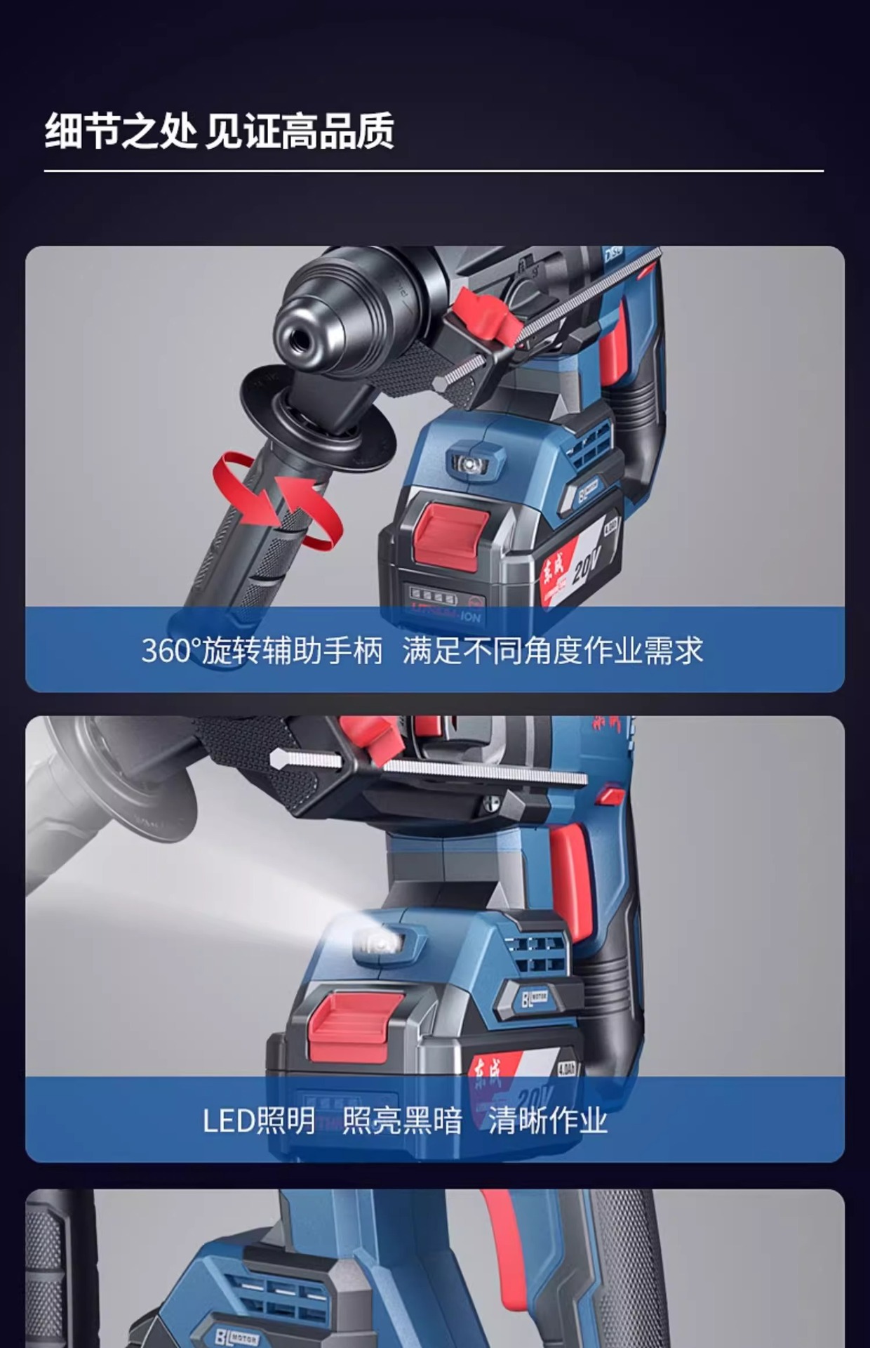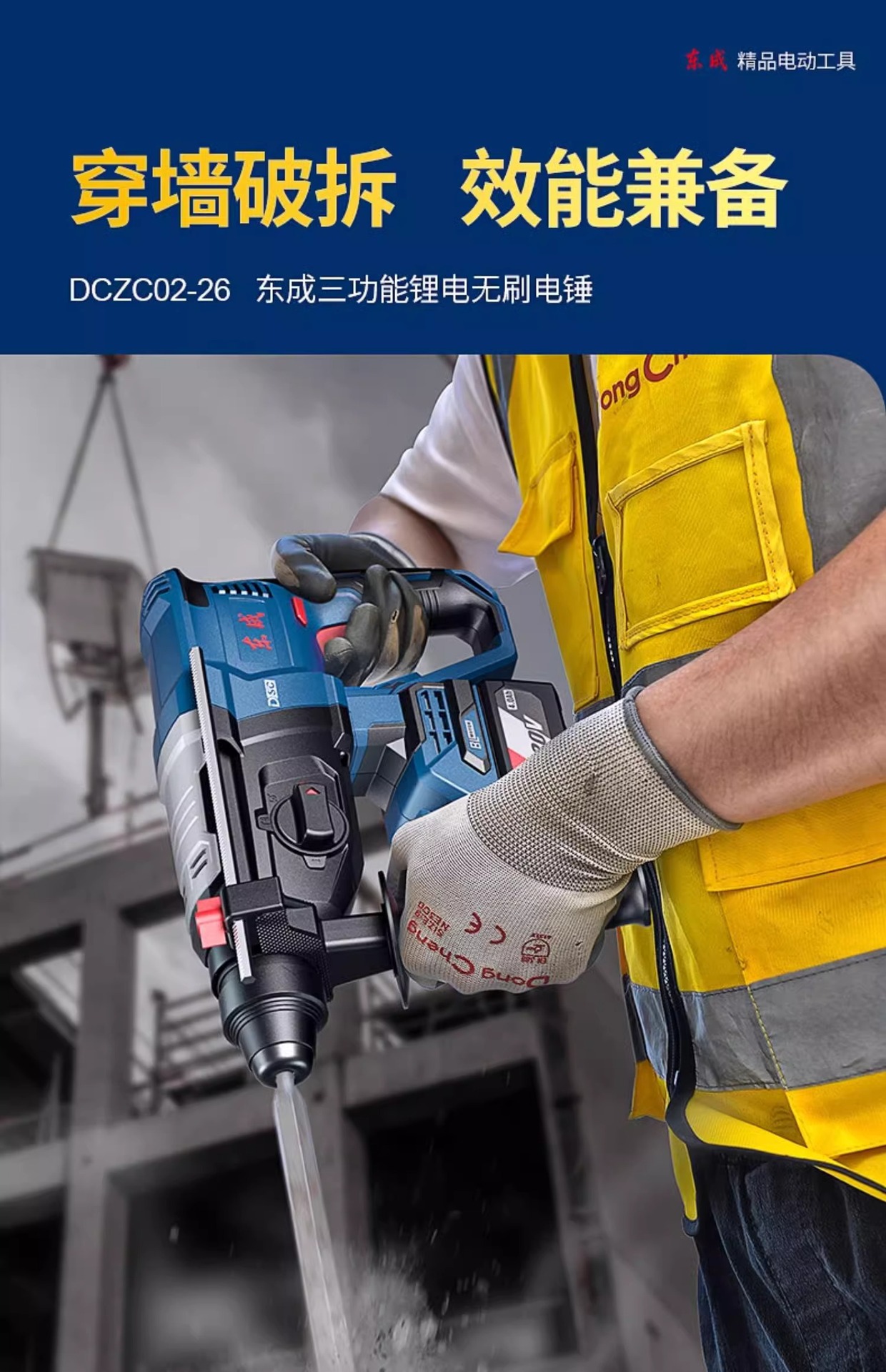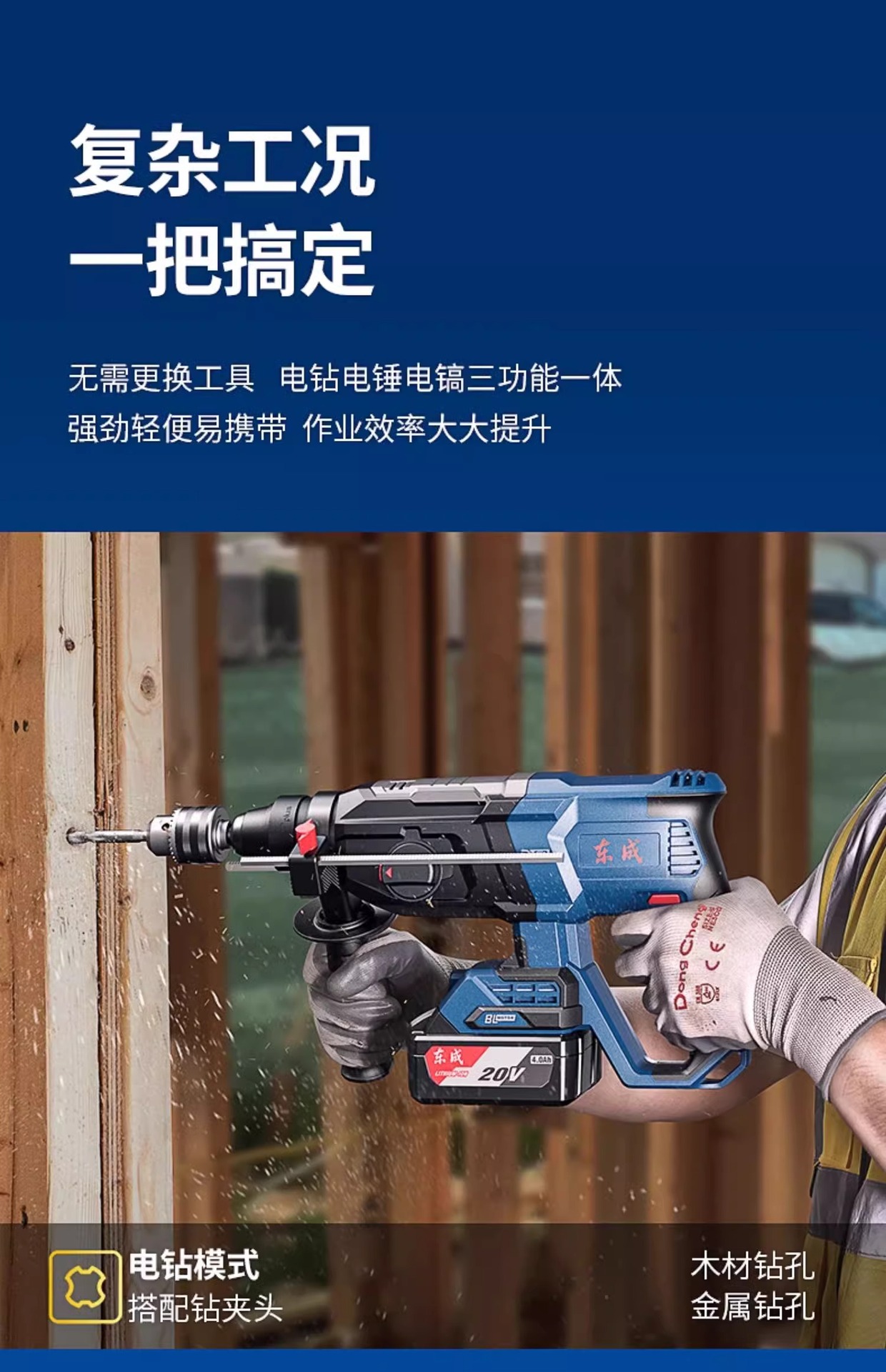 Dongcheng martillo DCZC02-26 multifuncional 20V taladro eléctrico de impacto recargable electrolítico martillo de tres usos