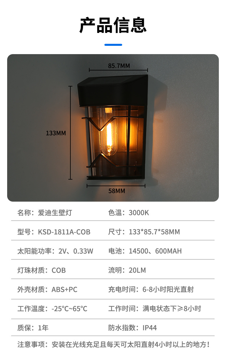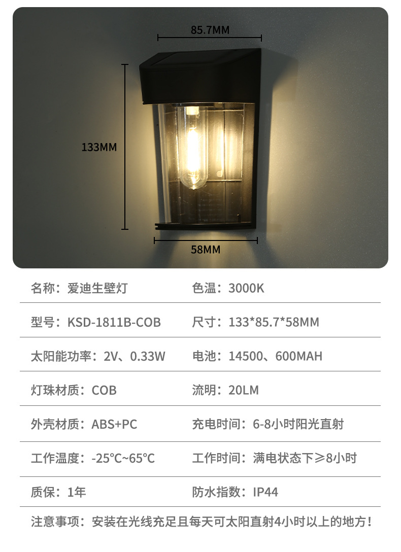 Solar Edison lámpara de pared balcón lámpara de pared luz solar lámpara de inducción inteligente lámpara de pared impermeable