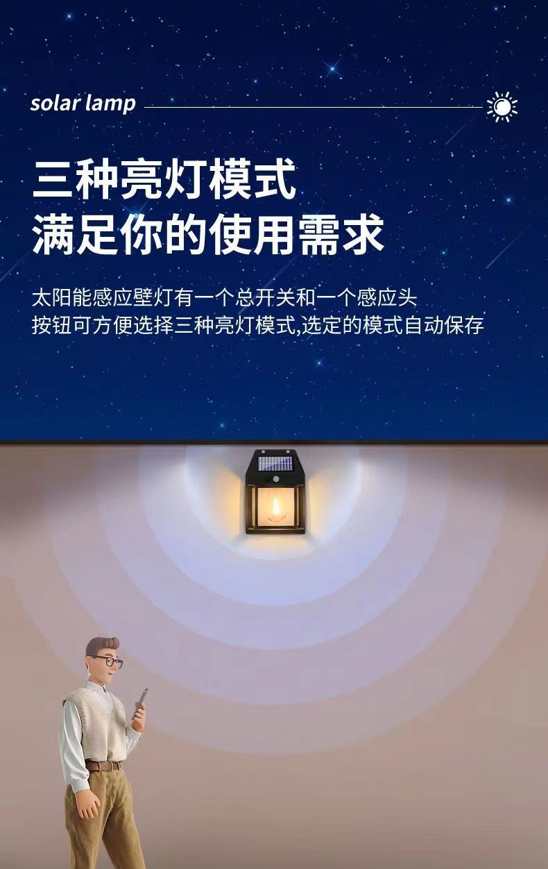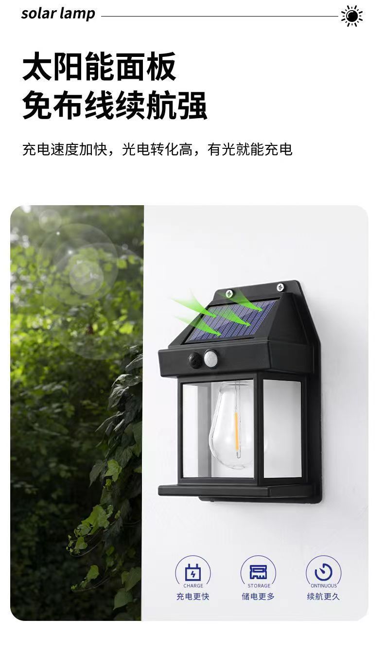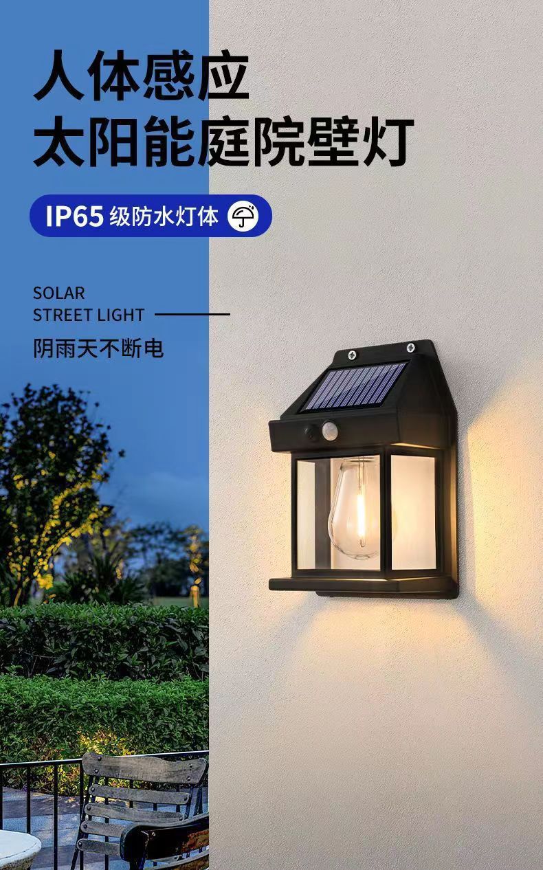 Lámpara de alambre de tungsteno solar transfronteriza lámpara de patio al aire libre oscura iluminación automática de la villa iluminación de jardín de la lámpara de pared de inducción del cuerpo humano
