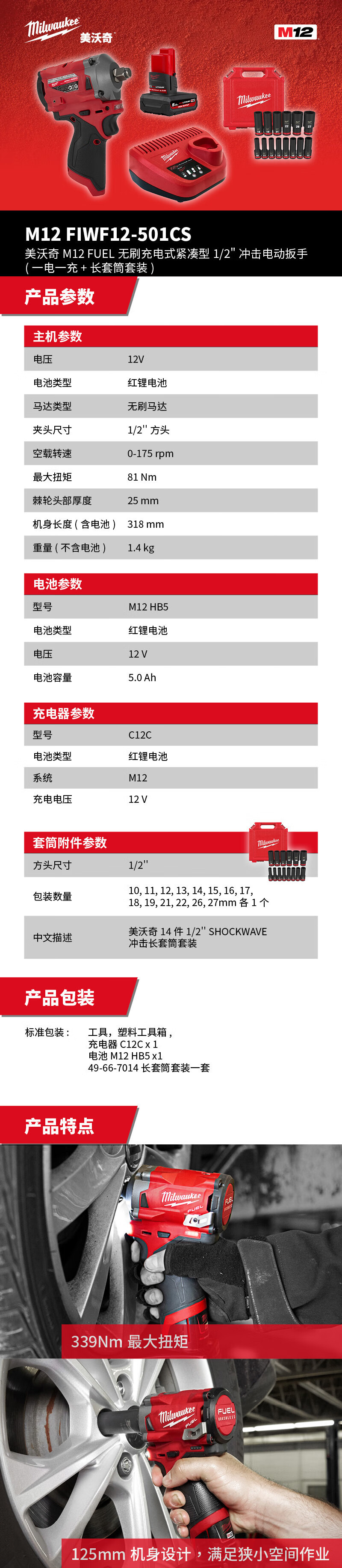 Miwachi Miwachi M1/2 FIWF1/2-501CS M1/2 FUEL sin escobillas recargable compacto 1 / 2 impulso