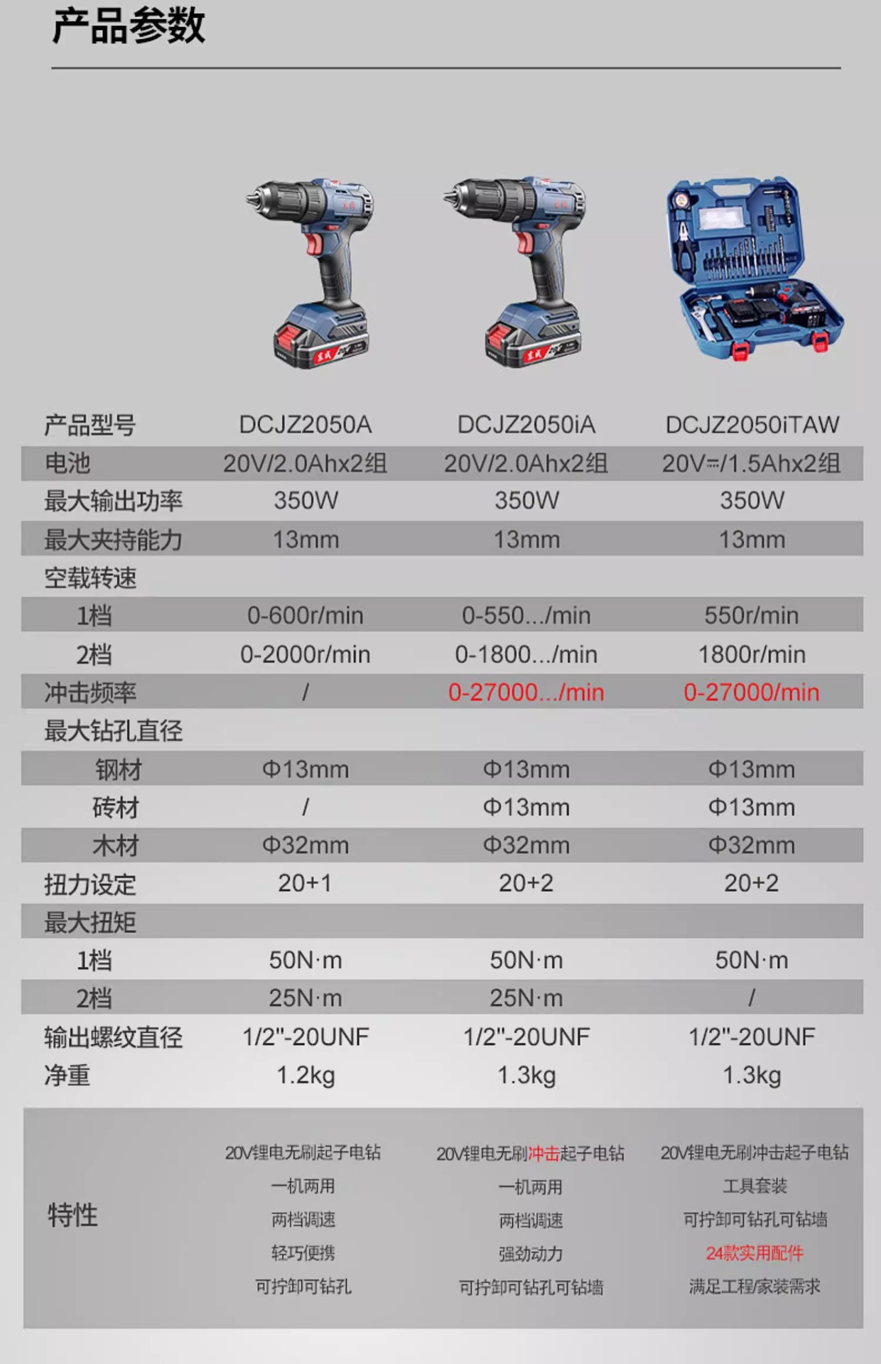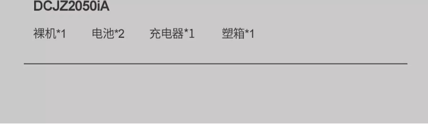 | Especificaciones y modelos | DCJZ2050 [metal desnudo] sin cargador de batería, DCJZ2050 [electricidad única 2.0Ah], DCJZ2050 [electricidad dual 2.0Ah], DCJZ2050 [electricidad única 2.0Ah] + paquete de regalo, DCJZ2050 [electricidad dual 2.0Ah] + paquete de regalo, DCJZ2050 [electricidad única 4.0Ah], DCJZ2050 [electricidad dual 4.0Ah], DCJZ2050 [electricidad única 4.0Ah] + paquete de regalo, DCJZ2050 [electricidad dual 4.0Ah] + paquete de regalo |