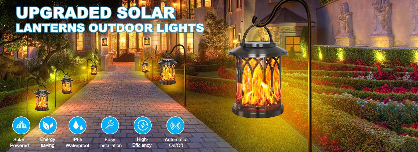 Hot sale lámpara de llama solar al aire libre lámpara de lámpara candelabro lámpara de jardín lámpara de paisaje retro viento de alta potencia lámpara de calle