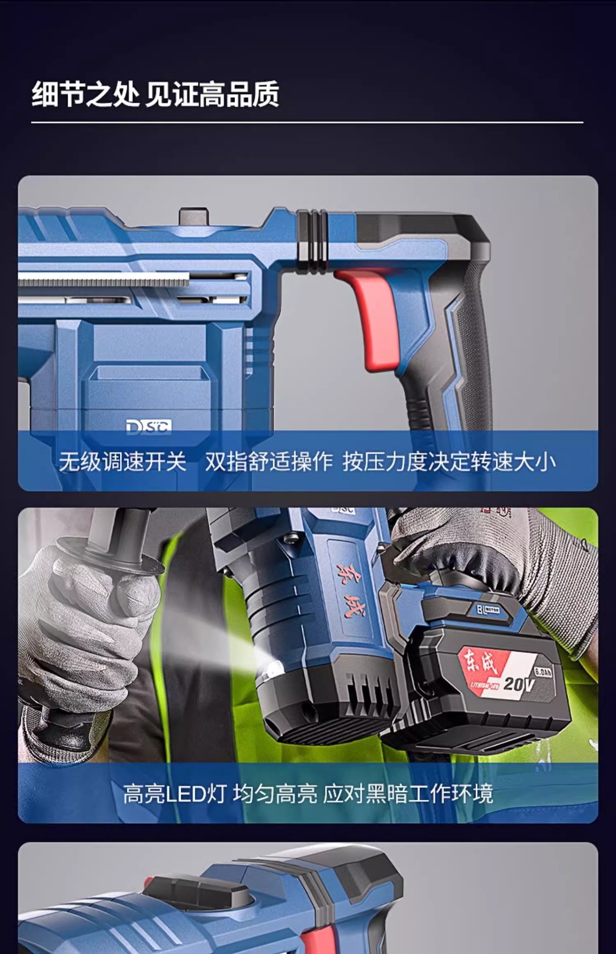 Dongcheng 1000W martillo de litio sin escobillas DCZC02 - 28 martillo de litio multifuncional de doble propósito martillo de carga de alta potencia