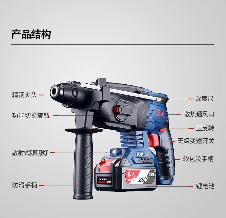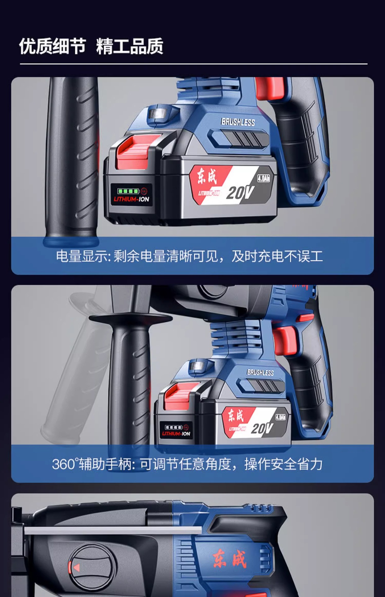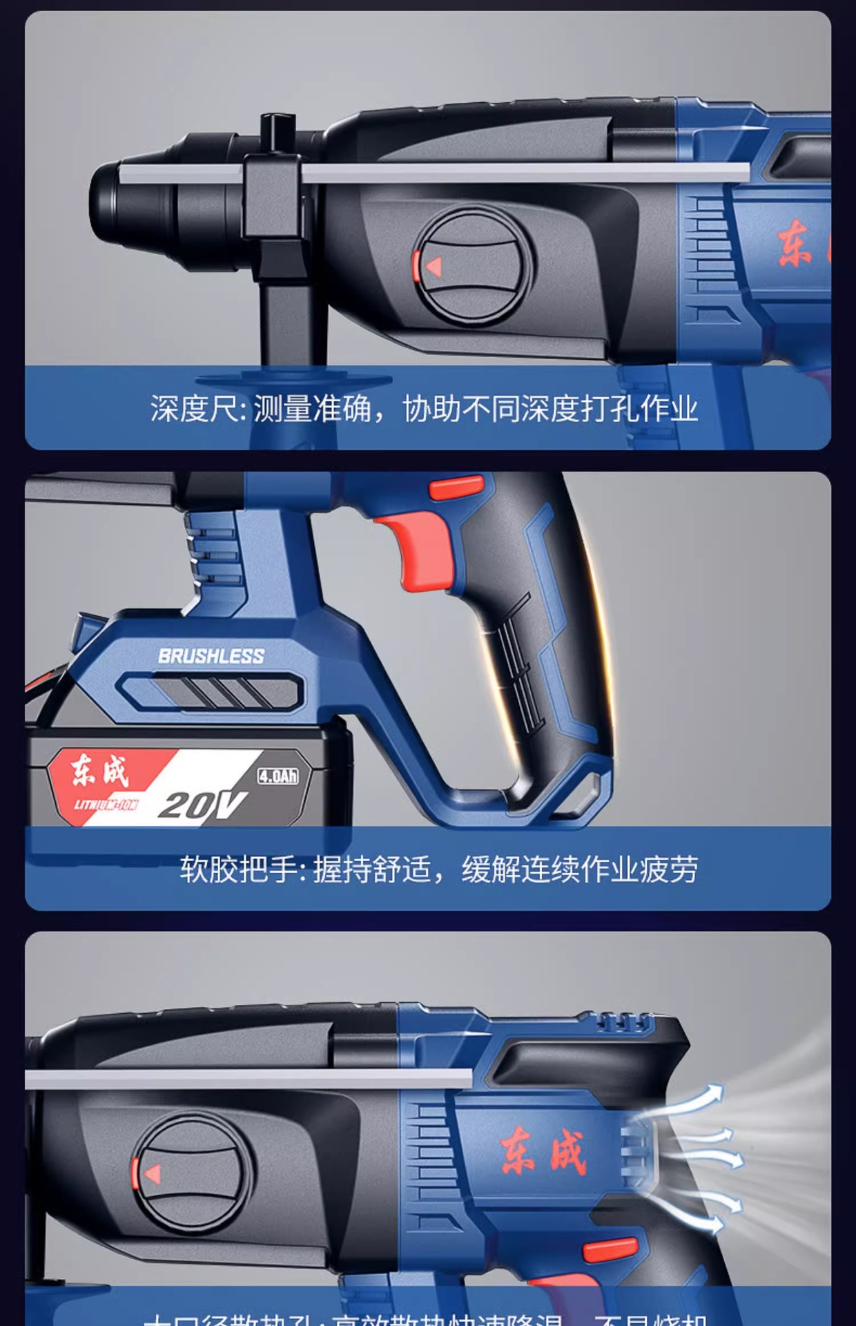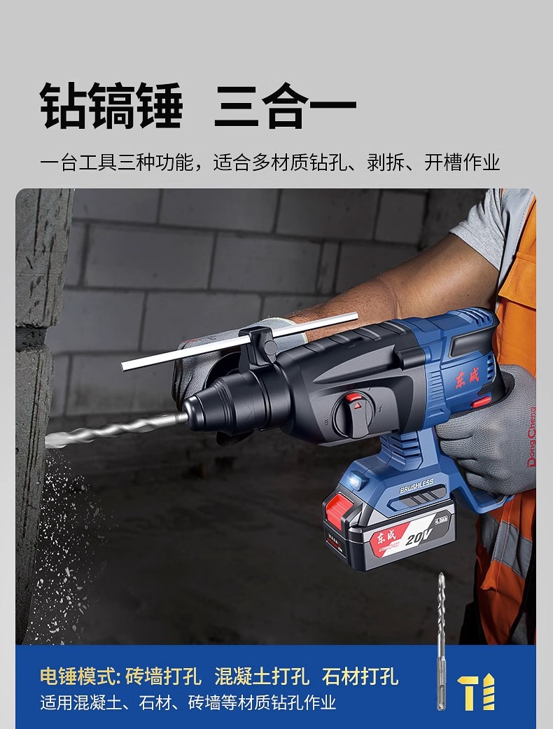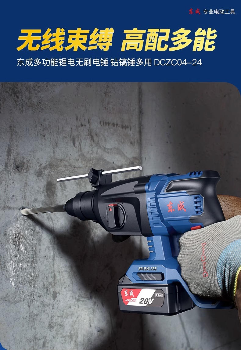 Dongcheng martillo eléctrico recargable DCZC04-24 multifuncional perforación de impacto eléctrica picador eléctrico hacia adelante y hacia atrás martillo eléctrico de tres usos