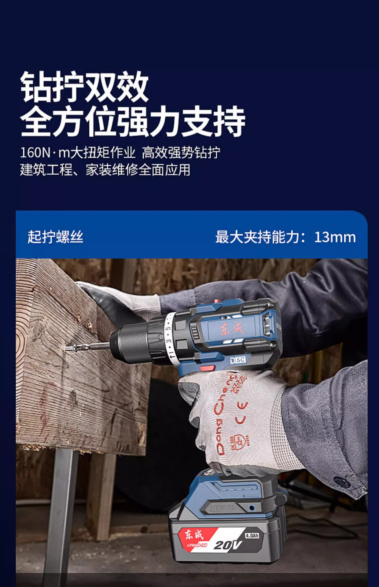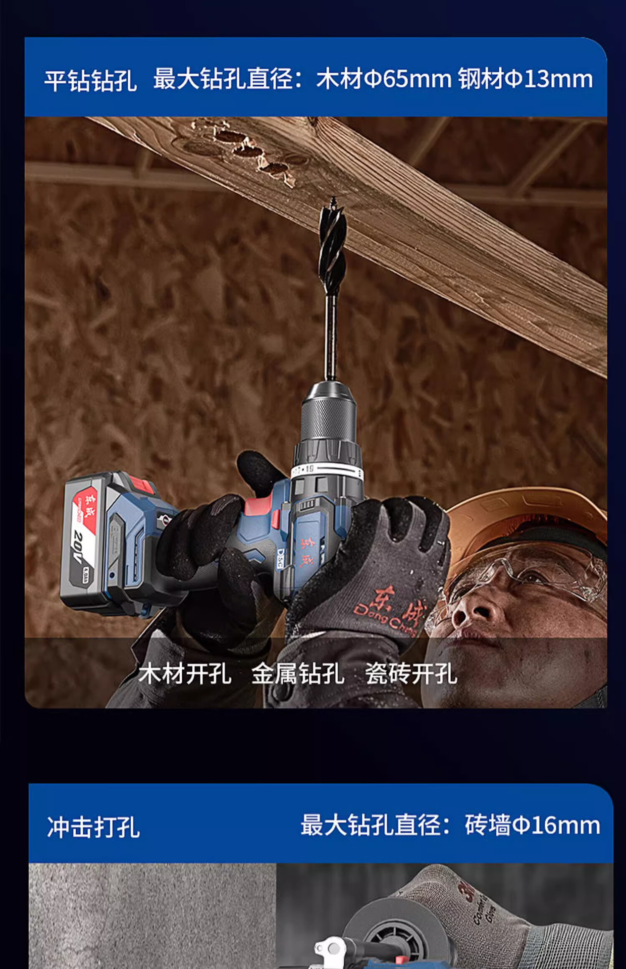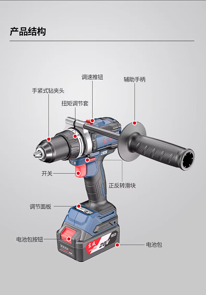 Dongcheng 20V taladro eléctrico de litio sin escobillas DCJZ20160i taladro de impacto de alta potencia multifuncional taladro eléctrico herramienta eléctrica