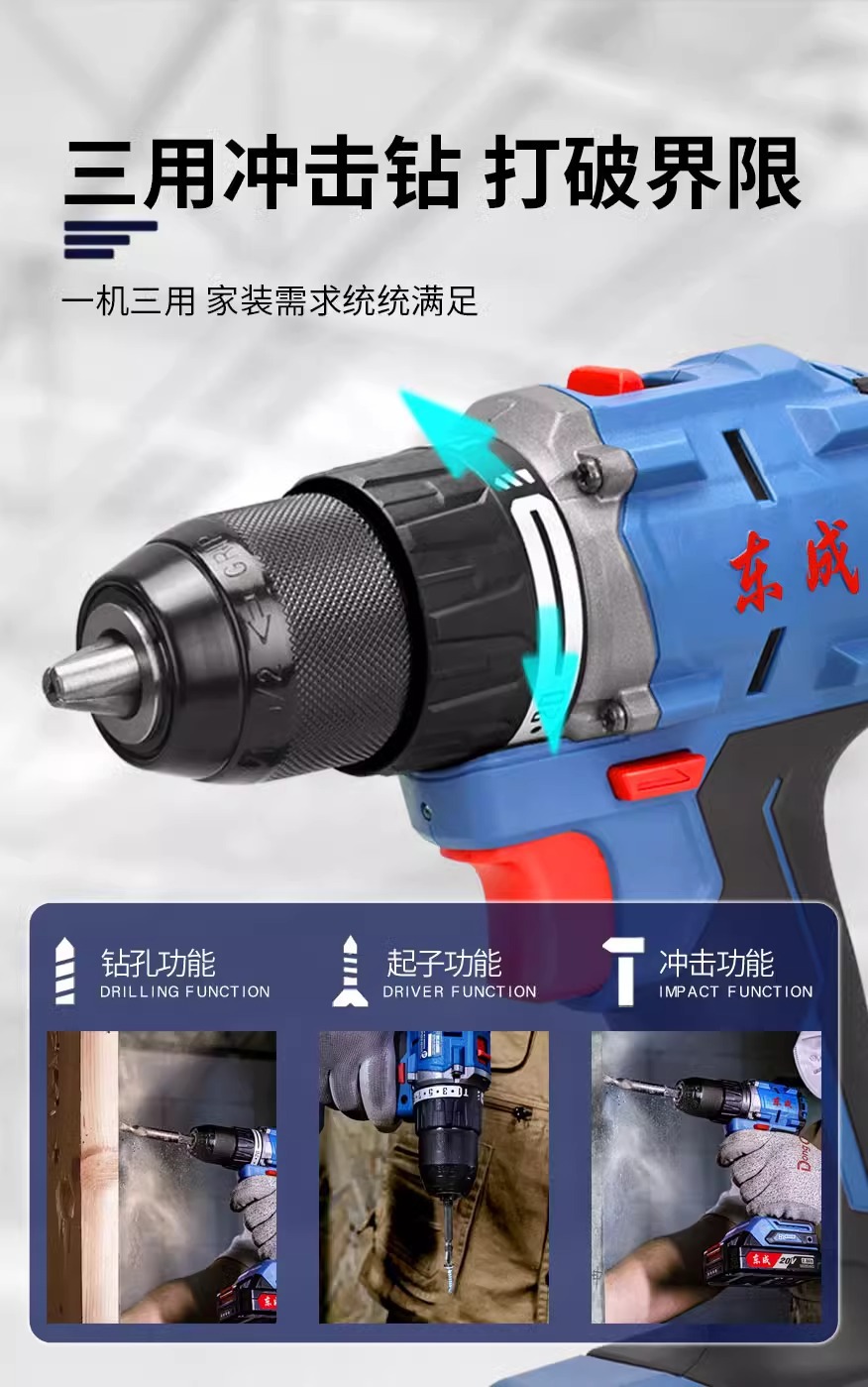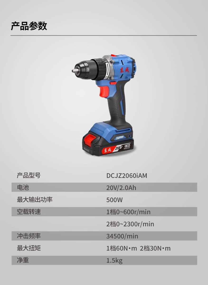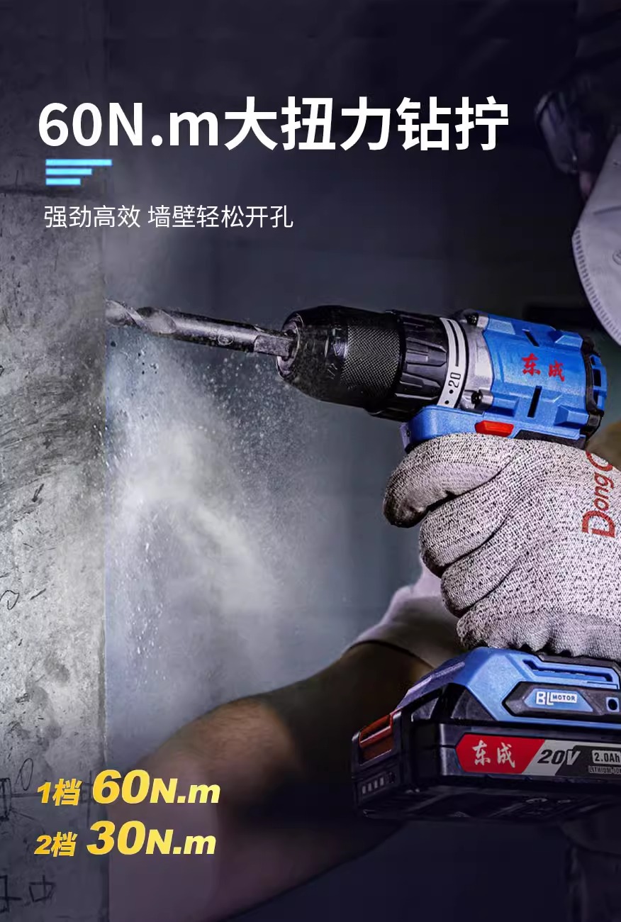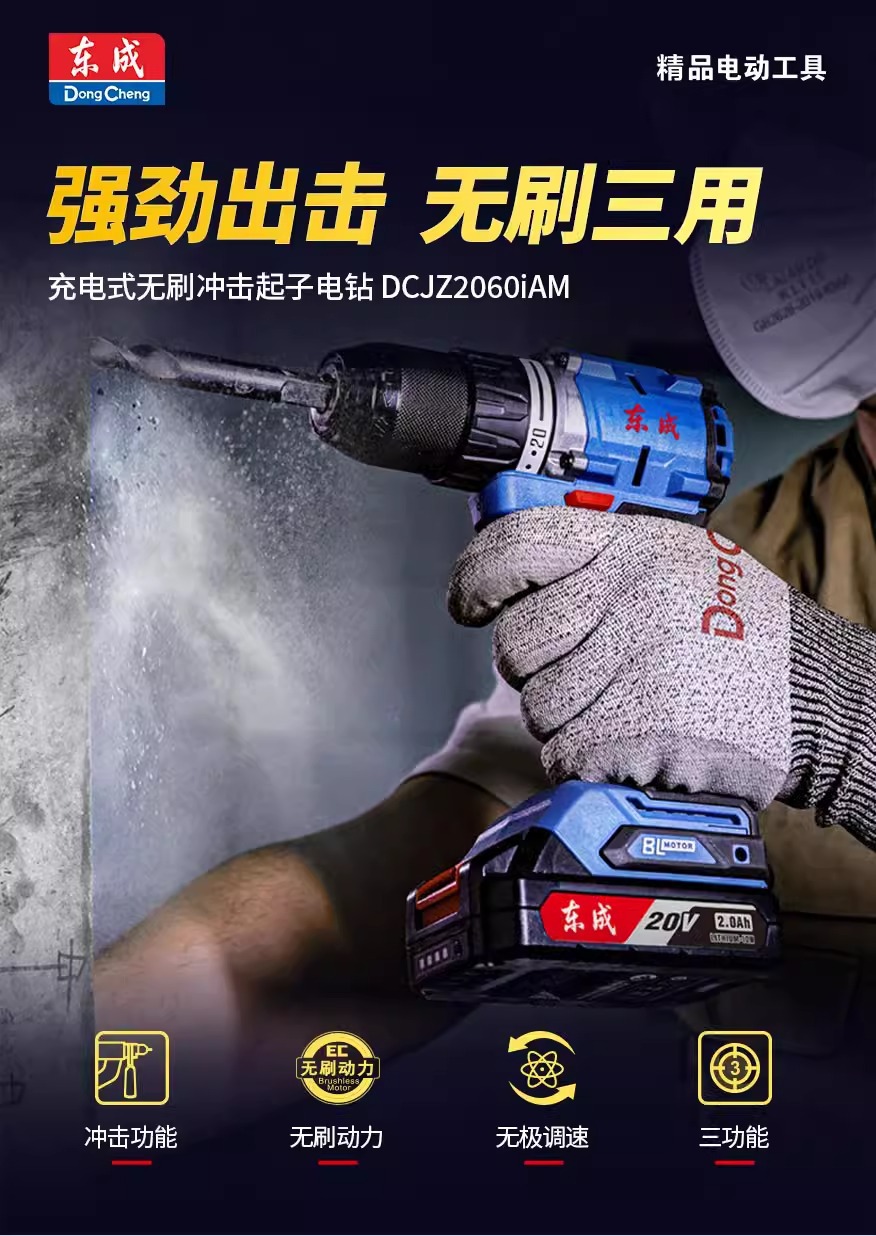 Dongcheng2060i taladro de impacto eléctrico de litio sin escobillas 20V taladro eléctrico recargable herramientas domésticas eléctricas taladro destornillador de mano