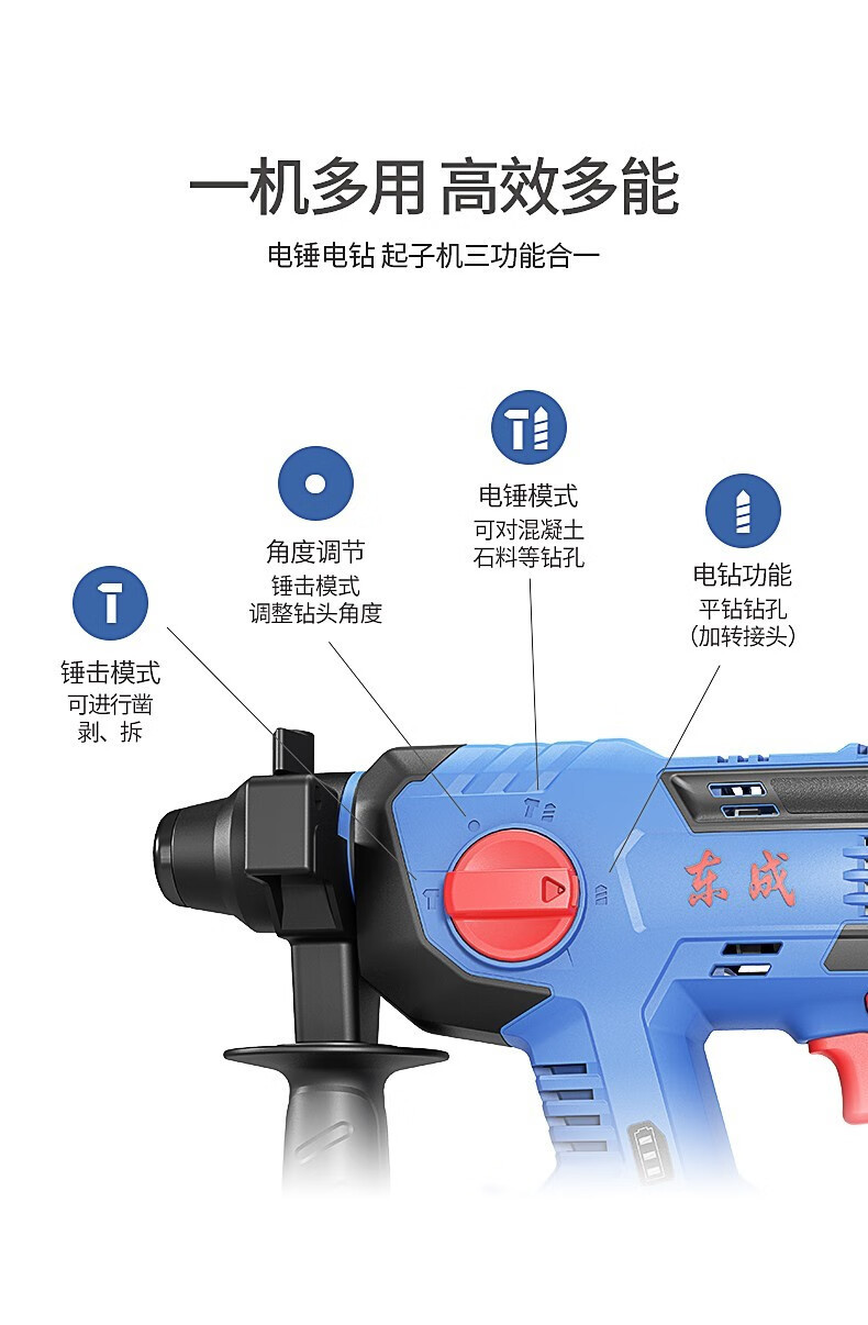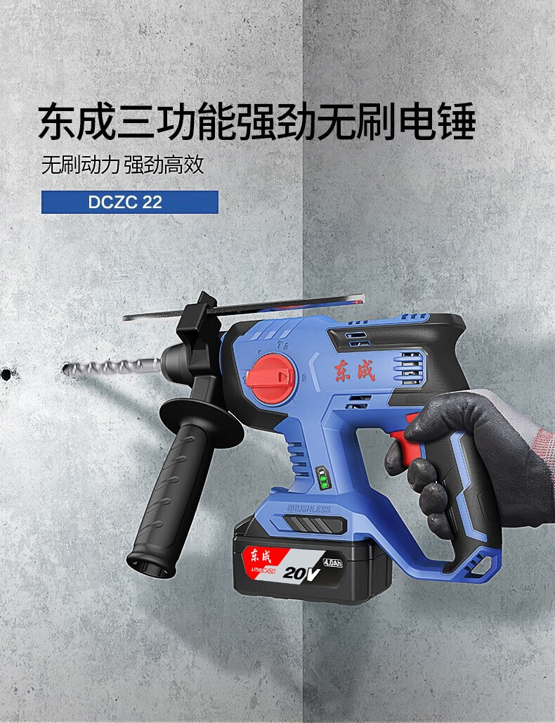 Dongcheng 20V martillo eléctrico de carga sin escobillas DCZC22 litio eléctrico tres taladro eléctrico de impacto taladro eléctrico picador eléctrico Dongcheng golpear agujero eléctrico