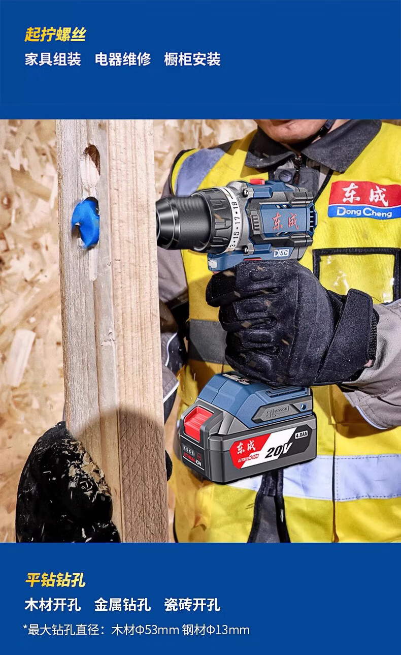 Dongcheng DCJZ2090 taladro eléctrico de litio sin escobillas 20V taladro eléctrico recargable destornillador eléctrico de alta potencia