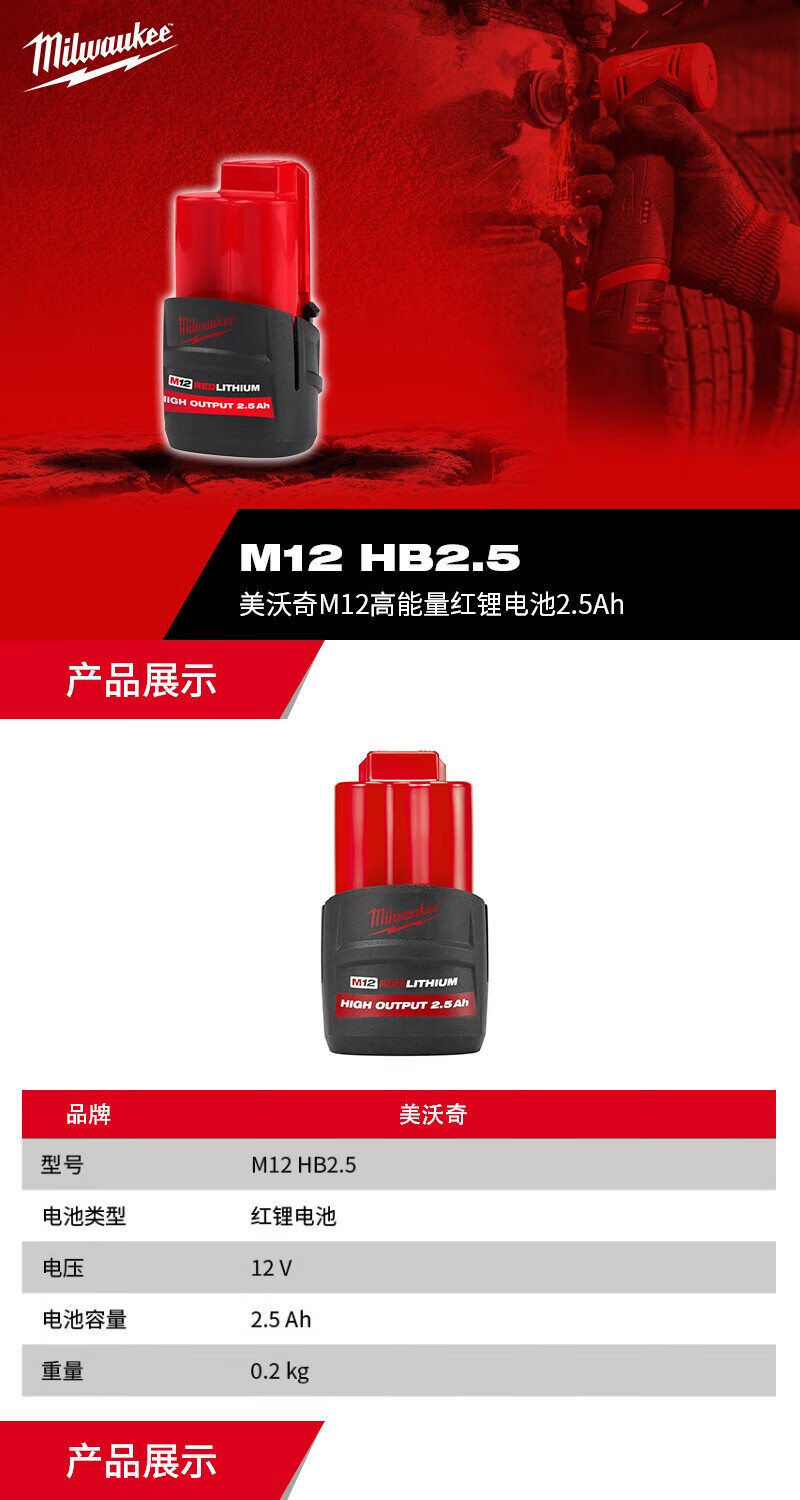 Batería de litio rojo de alta energía M12 HB2.5 M12 2.5Ah