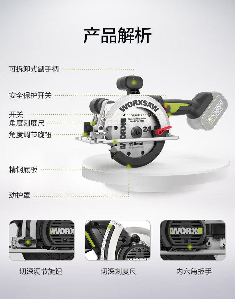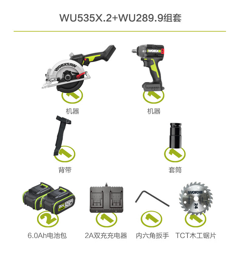 WIX 20V sierra circular eléctrica sin escobillas WU535X.2 (6.0 doble eléctrica) llave eléctrica WU289.9 herramientas