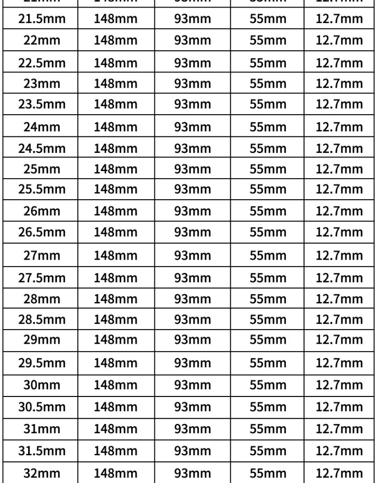 | Especificaciones y modelos | 12mm [6542 de alta resistencia], 13mm [6542 de alta resistencia], 13.5mm [6542 de alta resistencia], 14mm [6542 de alta resistencia], 14.5mm [6542 de alta resistencia], 15mm [6542 de alta resistencia], 15.5mm [6542 de alta resistencia], 16mm [6542 de alta resistencia], 16.5mm [6542 de alta resistencia], 17mm [6542 de alta resistencia, 17.5mm [6542 de alta resistencia], 18mm [6542 alta resistencia], 18.5mm [6542 alta resistencia], 19mm [6542 alta resistencia], 19.5mm [6542 alta resistencia], 20mm [6542 alta resistencia], 20.5mm [6542 alta resistencia], 21mm [6542 alta resistencia], 21.5mm [6542 alta resistencia], 22mm [6542 alta resistencia], 22.5mm [6542 alta resistencia, 23mm [6542 alta resistencia], 23.5mm [6542 de alta resistencia], 24mm [6542 de alta resistencia], 24.5mm [6542 de alta resistencia], 25mm [6542 de alta resistencia], 25.5mm [6542 de alta resistencia], 26mm [6542 de alta resistencia], 27mm [6542 de alta resistencia], 28mm [6542 de alta resistencia], 29mm [6542 de alta resistencia], 30mm [6542 de alta resistencia], 32mm [6542 de alta resistencia] |