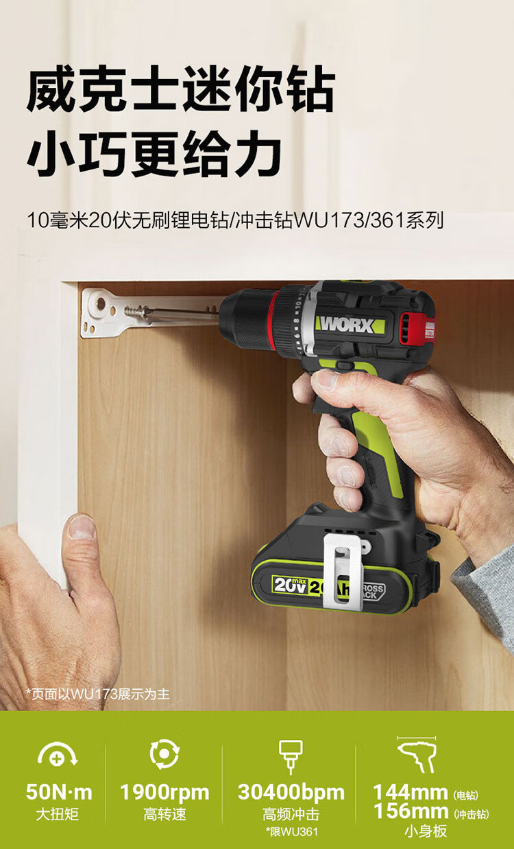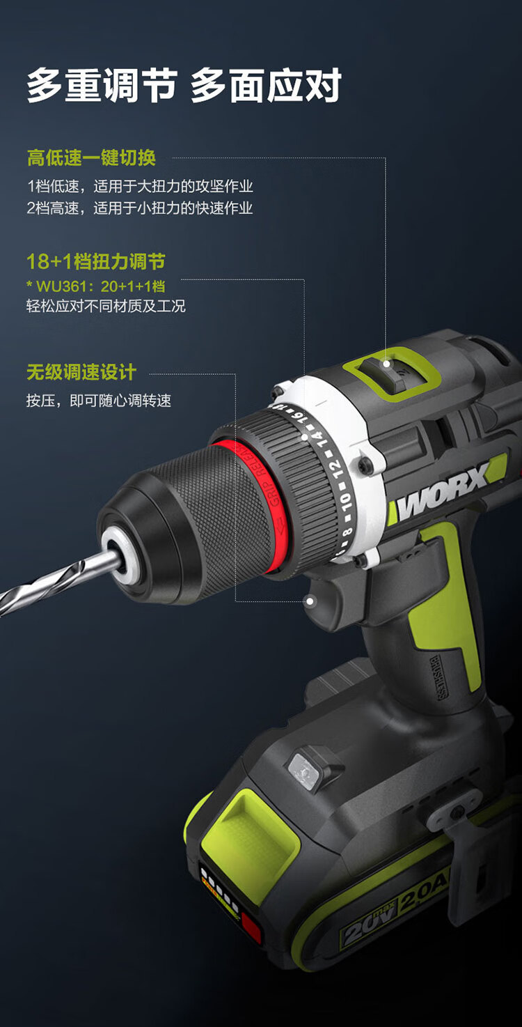 WIX 20V taladro de impacto sin escobillas WU361.1 (2.0 una sola electricidad) taladro de batería de litio taladro de pistola de pared doméstica