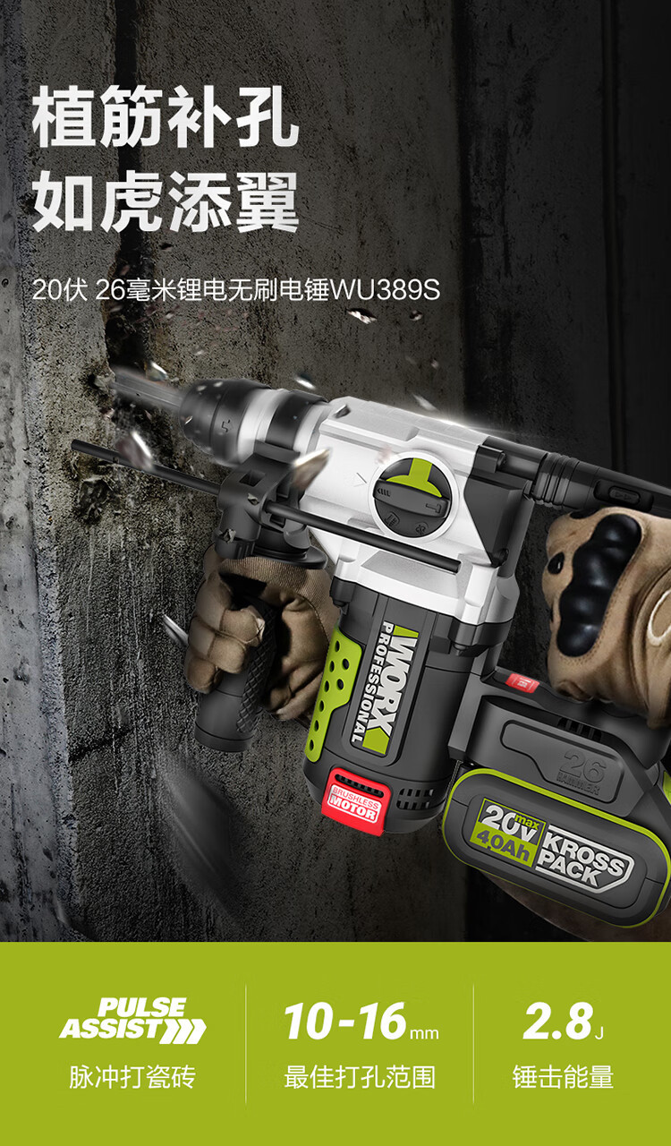 WIX 20V martillo de carga sin escobillas taladro de impacto WU389S batería de litio taladro eléctrico de concreto WU38