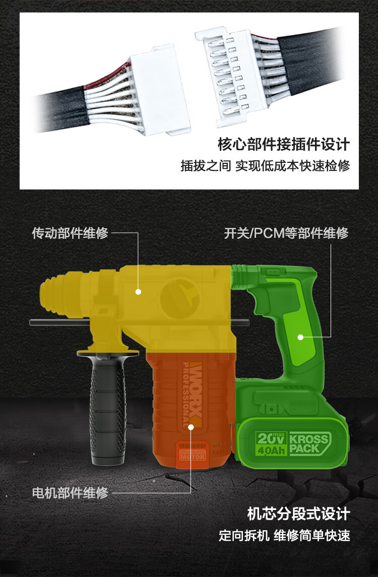 WEX WORX WU388.4 martillo de carga sin escobillas taladro de impacto (5.0 doble eléctrico) batería de litio picador eléctrico