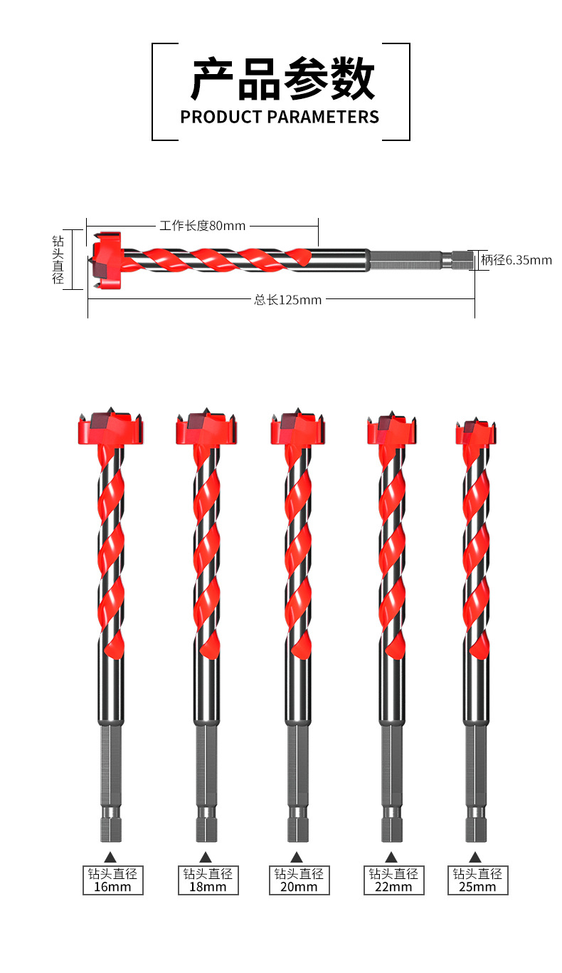 | Modelo | 16MM espiral alargada perforadora de carpintería, 18MM espiral alargada perforadora de carpintería, 20MM espiral alargada perforadora de carpintería, 22MM espiral alargada perforadora de carpintería, 25MM espiral alargada perforadora de carpintería |