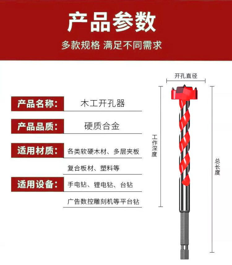 Jintian alargar perforador de carpintería 18mm puerta cerradura agujero bisagra de escritorio agujero de agujero de madera agujero taladro especial artefacto