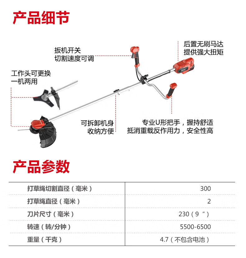 Daiyou Daiyou cortadora de césped eléctrica sin escobillas recargable multifuncional para cortar césped, cortar césped, eliminar hierbas y cortar riego