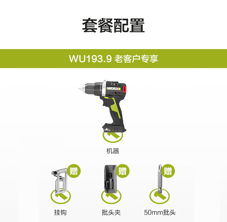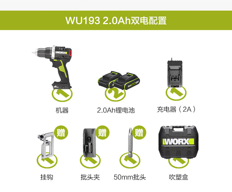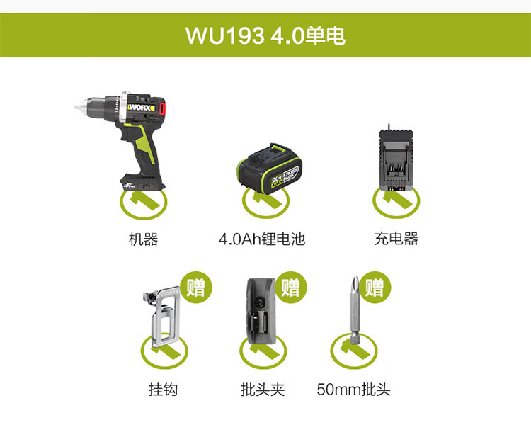 | Modelo | WU193 [perforación eléctrica doble 95N.m2.0Ah], WU193.9 [metal desnudo sin cargador de batería], WU193.1 [perforación eléctrica doble 95N.m5.0Ah], WU193 [perforación eléctrica única 95N.m2.0Ah], WU193 [perforación eléctrica única 95N.m4.0Ah], WU193 [perforación eléctrica única 95N.m5.0Ah] |
