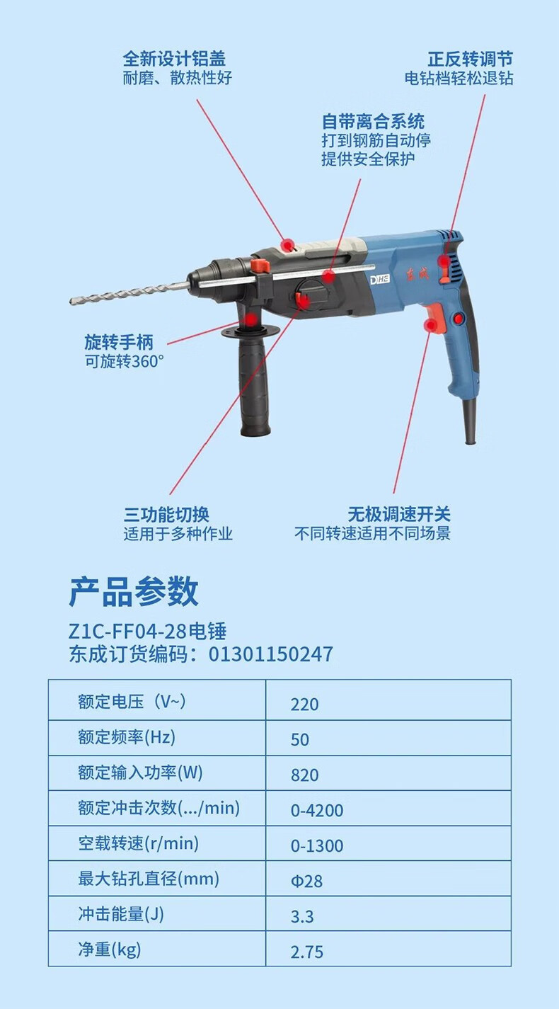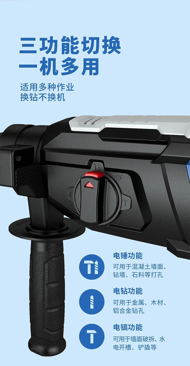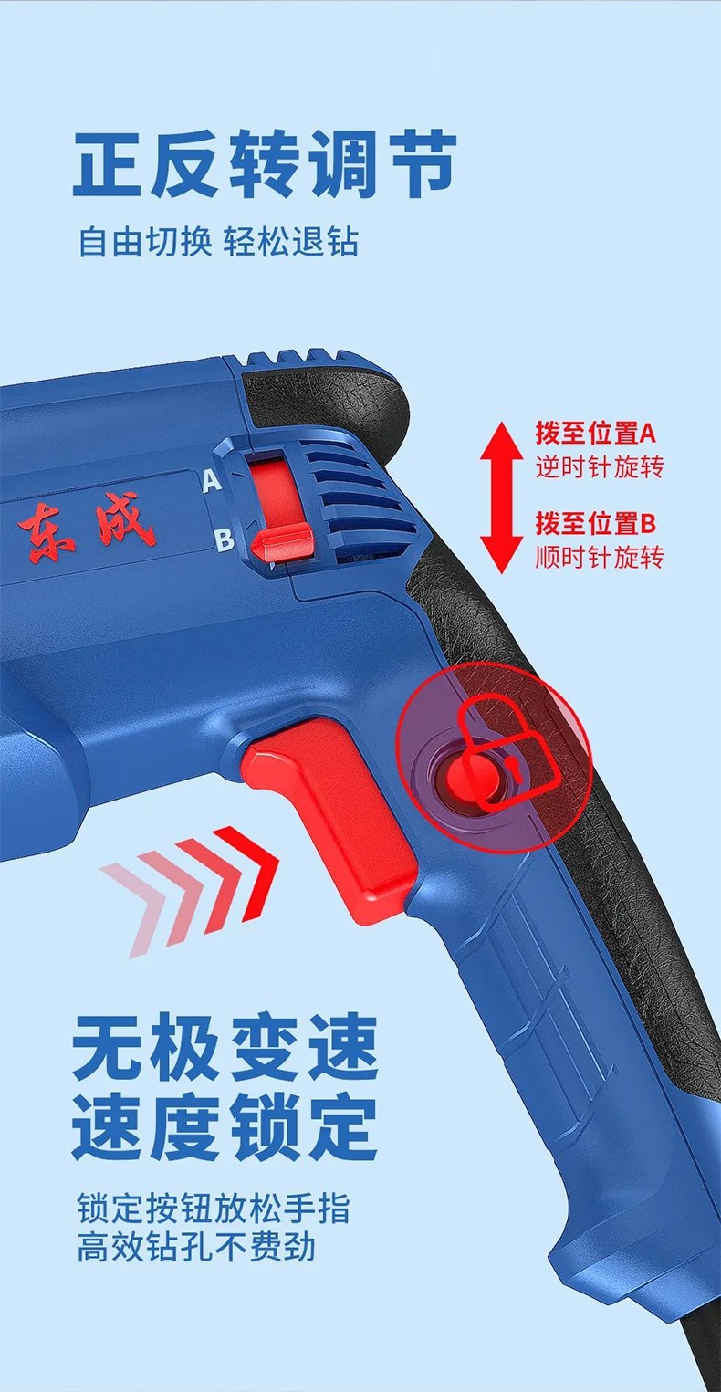 Dongcheng martillo de embrague de seguridad 28 martillo eléctrico martillo eléctrico de regulación de velocidad sin electrodo martillo de taladro eléctrico martillo de elevación eléctrica tres funciones hacia atrás