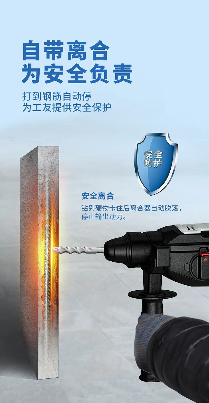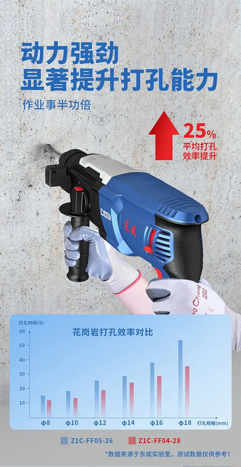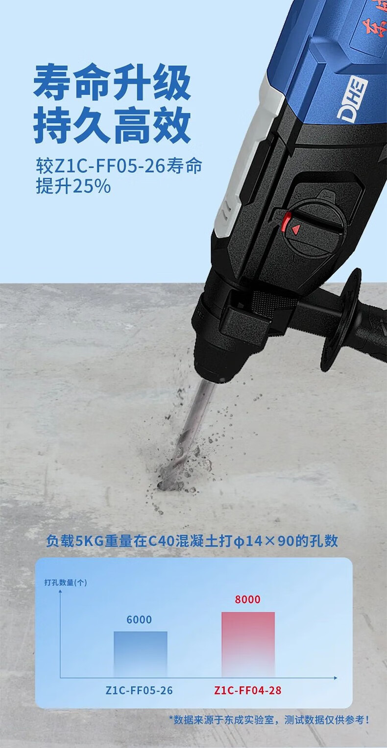 Dongcheng martillo de embrague de seguridad 28 martillo eléctrico martillo eléctrico de regulación de velocidad sin electrodo martillo de taladro eléctrico martillo de elevación eléctrica tres funciones hacia atrás