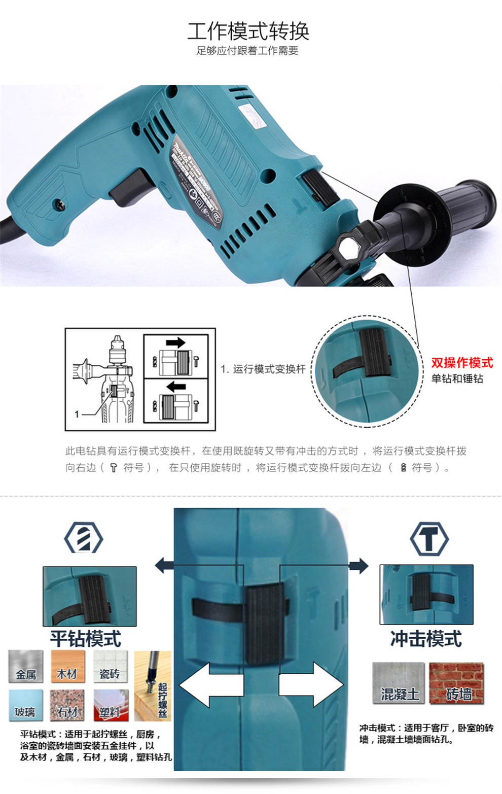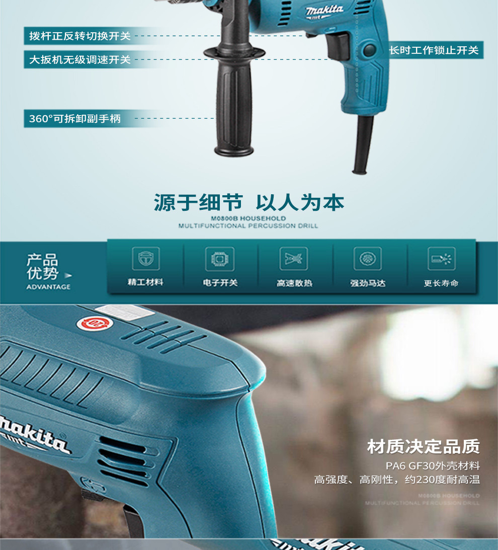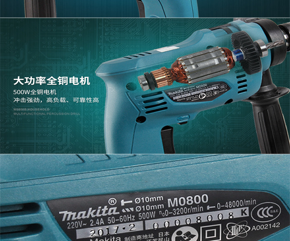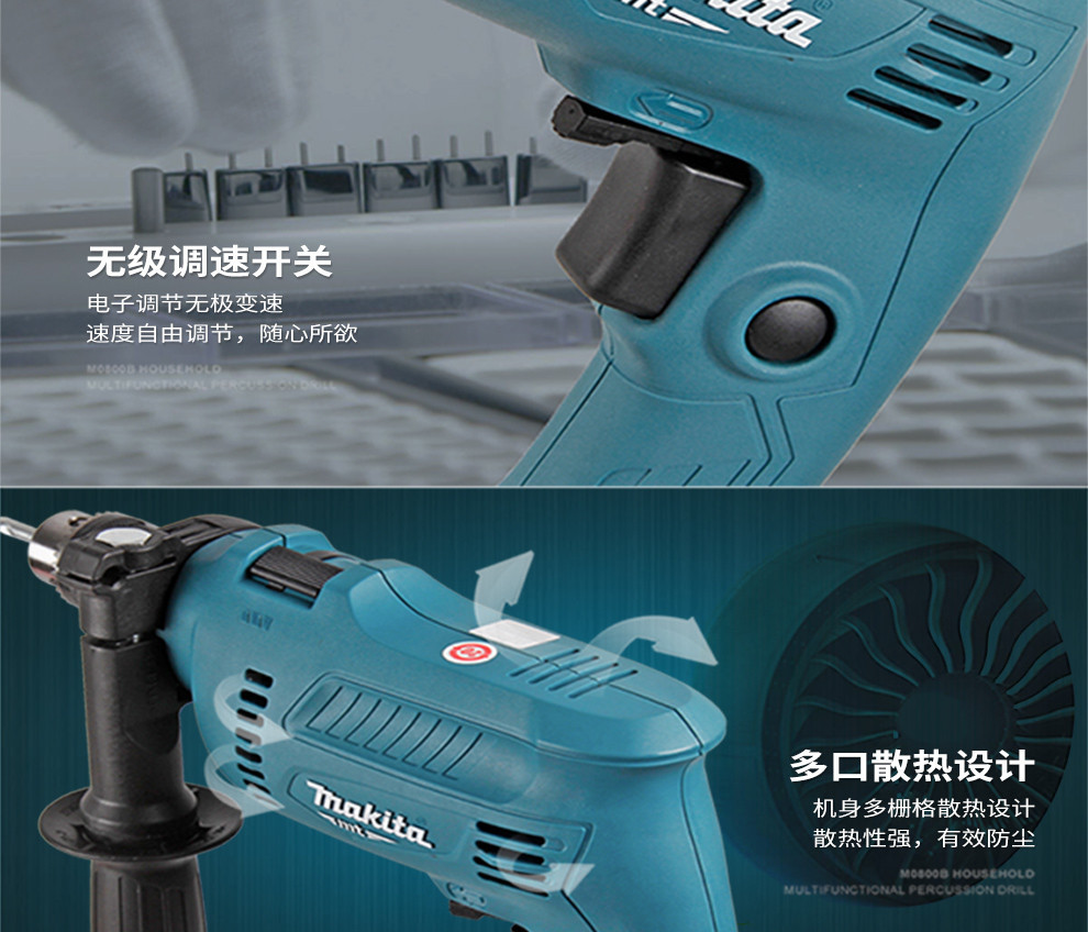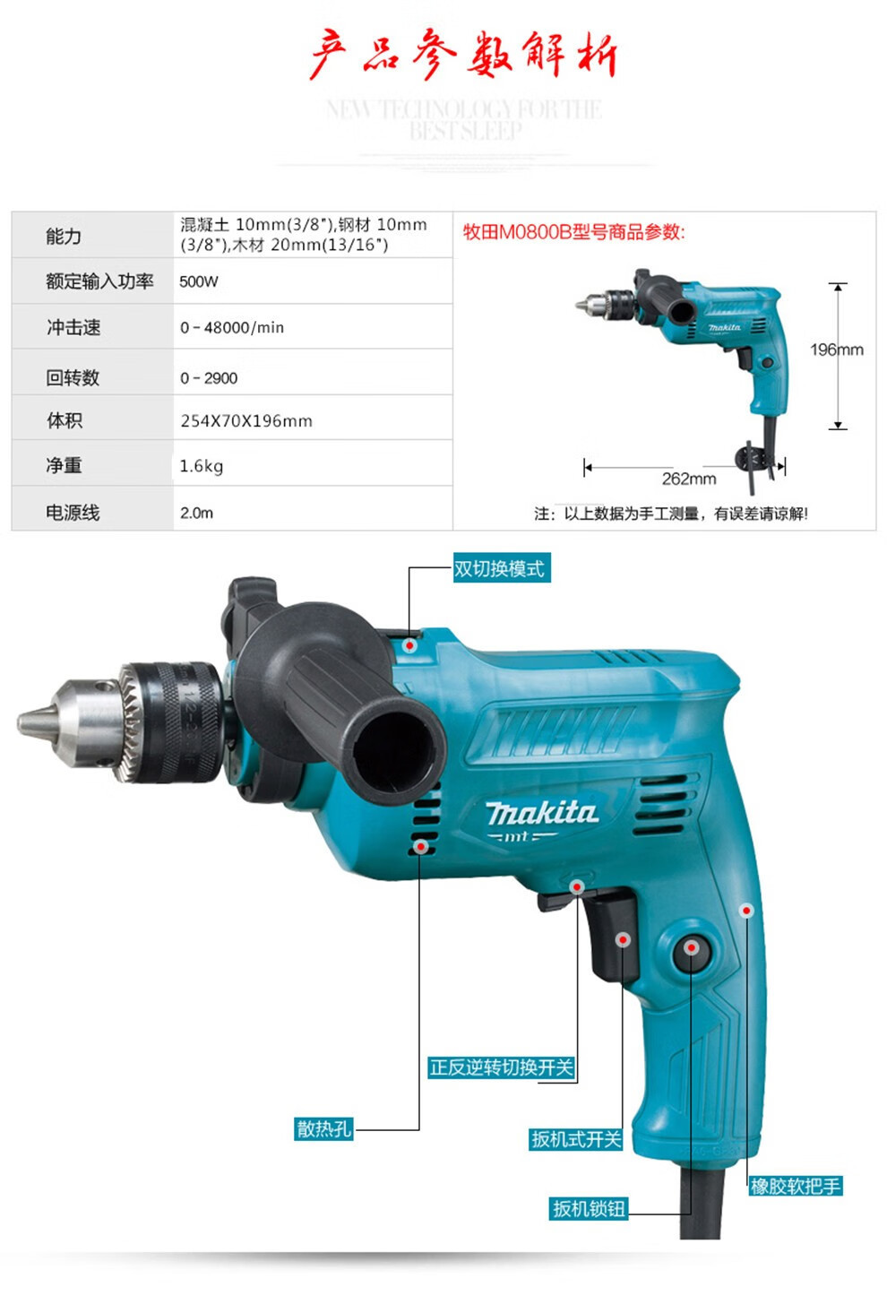 Muchiada Muchiada taladro de impacto 10mm taladro de mano decoración de madera metal piedra perforación de azulejos M0800B