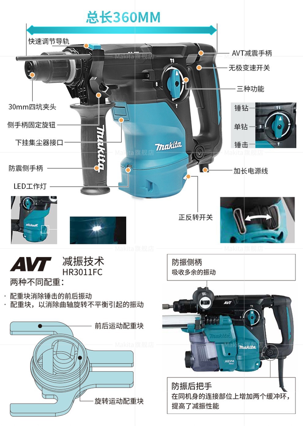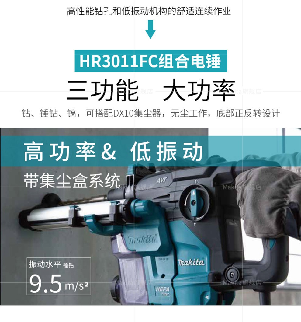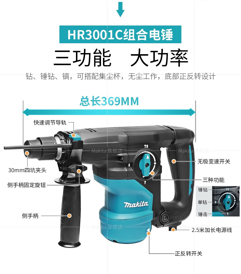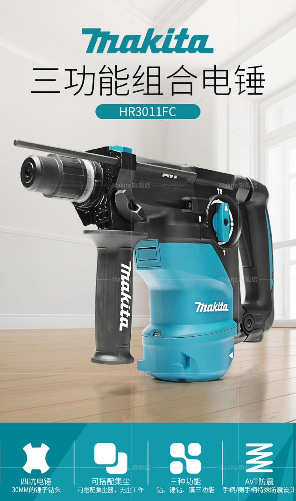 Mu田 Mu田 martillo perforador de impacto eléctrico HR3011FCJ polvo absorción de choque 28MM herramientas eléctricas de perforación de martillo