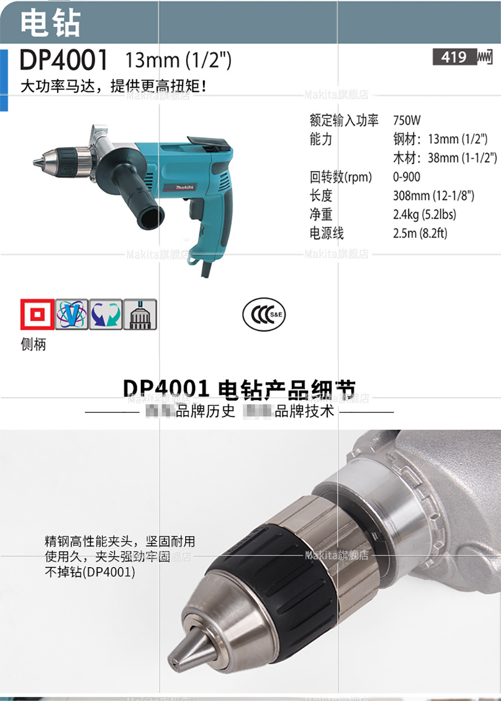 Japón de importación de 13mm Machieda taladro eléctrico de alta potencia 750W taladro eléctrico DP4001 herramienta eléctrica 6035