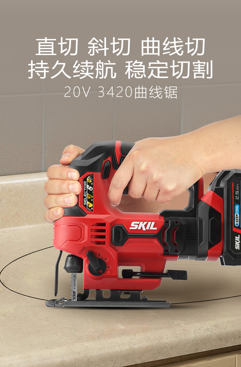 SKIL 20V Sierra de curva eléctrica de litio 3420 Sierra de alambre multifuncional carpintería cortadora de motosierra doméstica mano eléctrica
