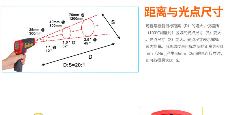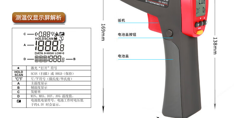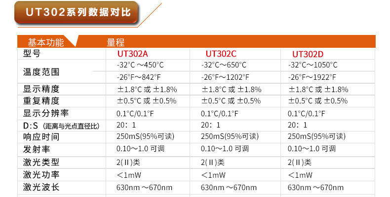 UNI-T UT302D termómetro infrarrojo electrónico industrial de mano sin contacto