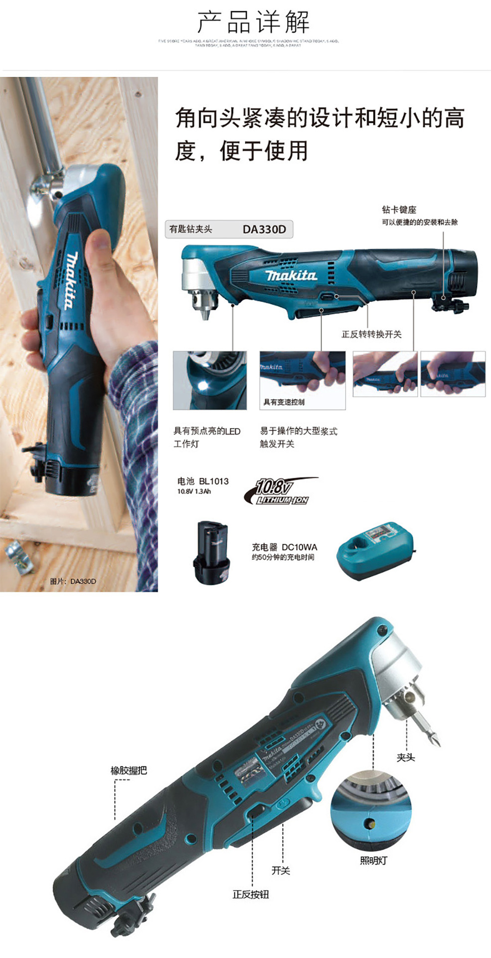 10.8V ángulo recto de carga taladro eléctrico taladro de codo taladro eléctrico de carpintería DA330DWE hardware eléctrico