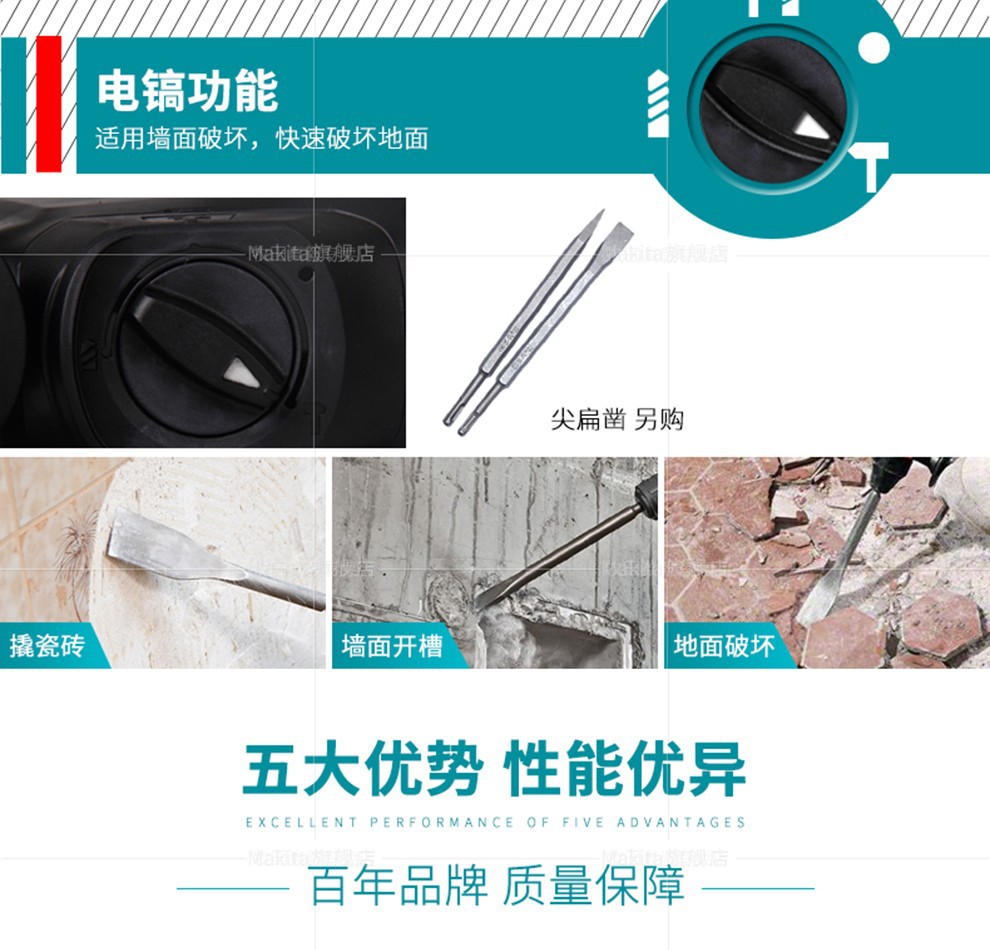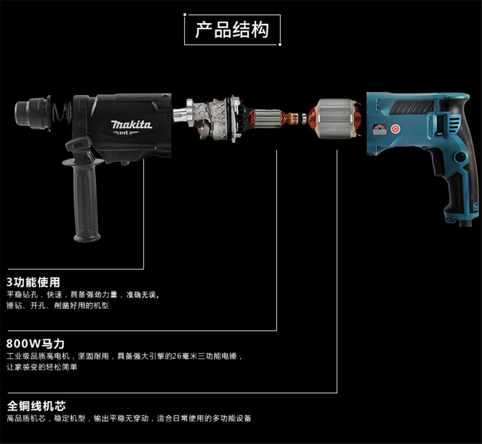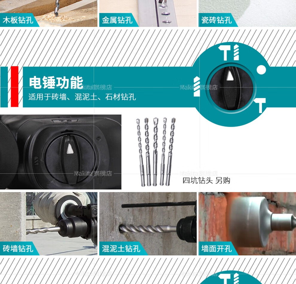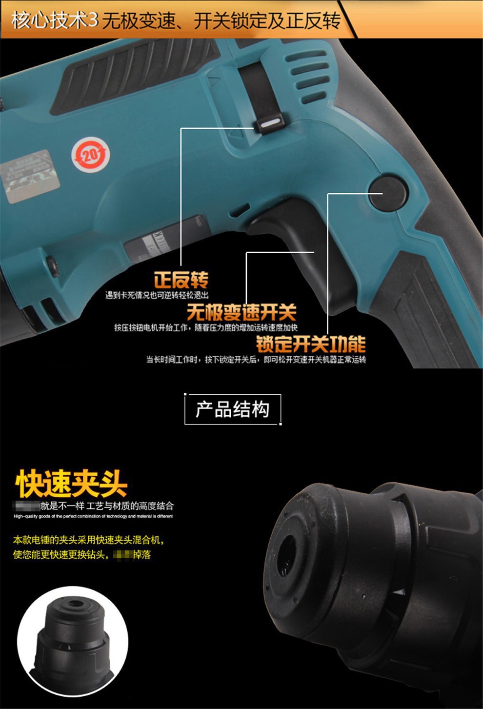 Martillo eléctrico multifuncional de cuatro pozos perforador de impacto de tres propósitos doméstico de 800 vatios herramienta eléctrica de decoración de alta potencia M