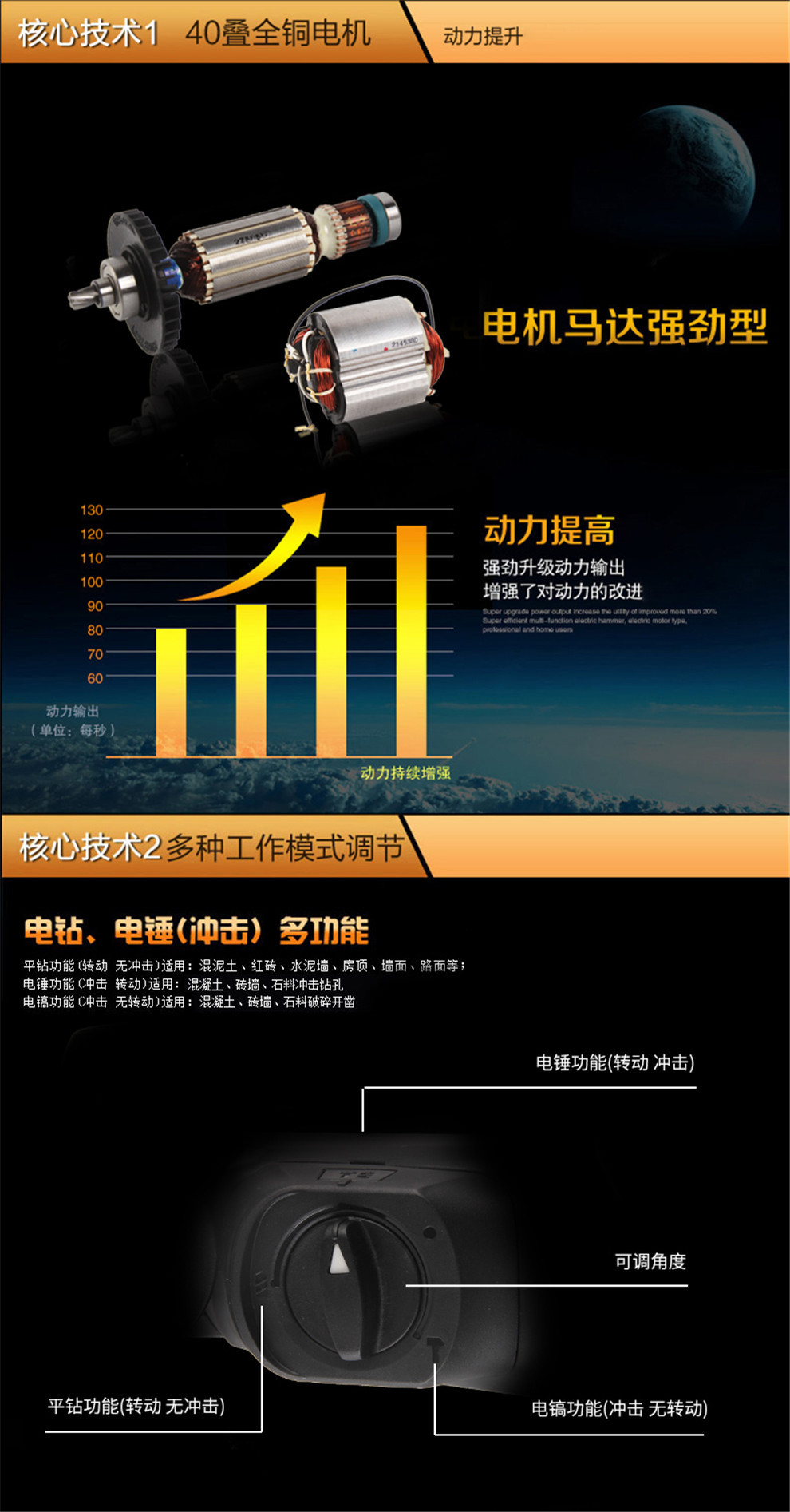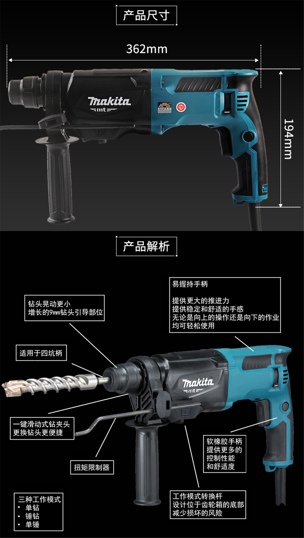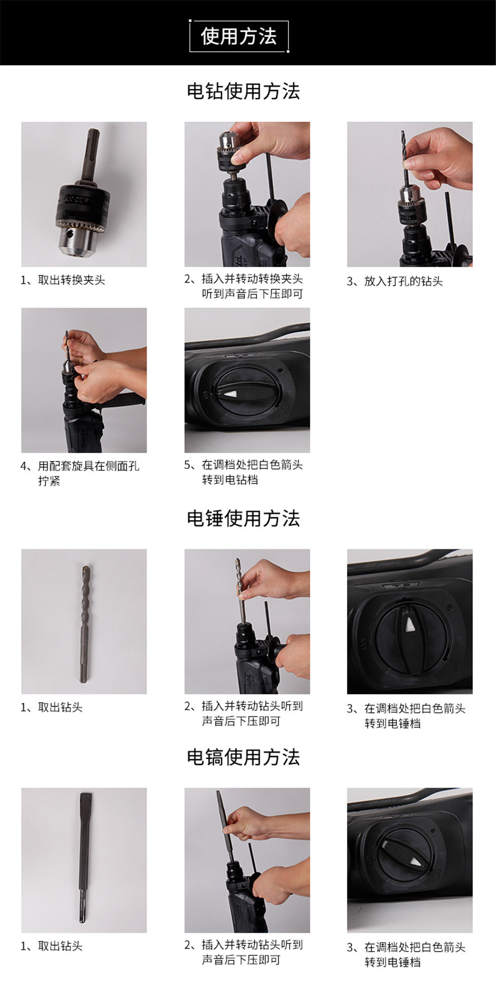 Martillo eléctrico multifuncional de cuatro pozos perforador de impacto de tres propósitos doméstico de 800 vatios herramienta eléctrica de decoración de alta potencia M