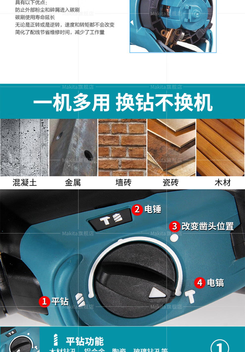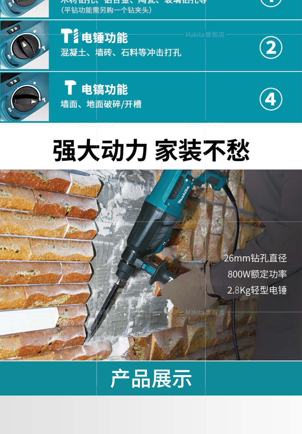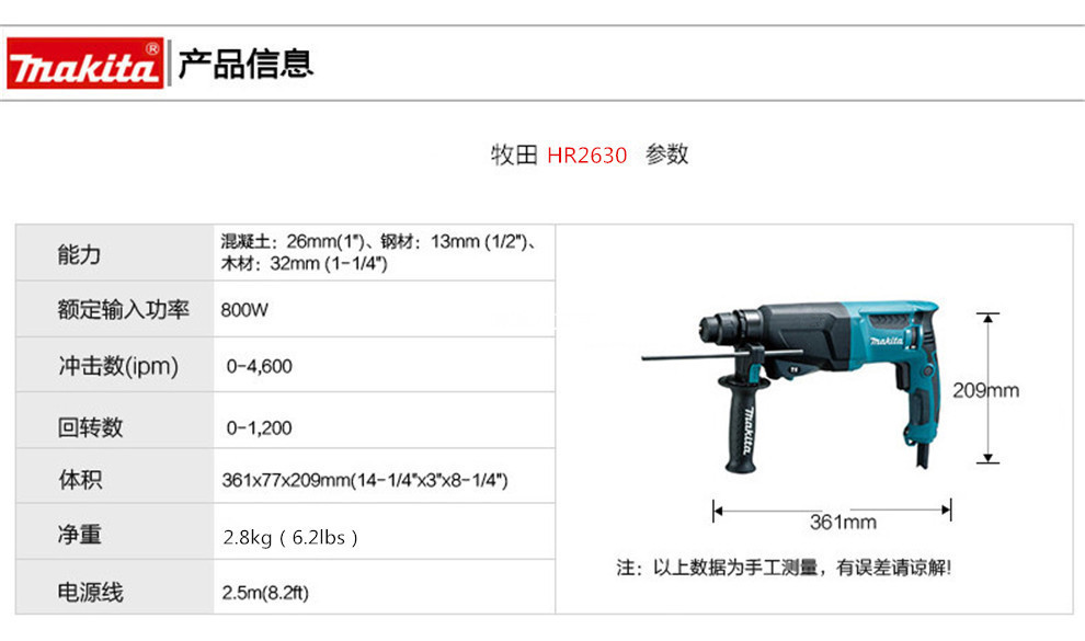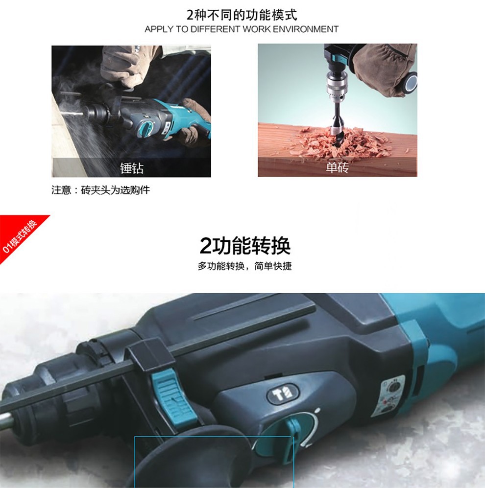 Muchieda Muchieda martillo eléctrico taladro de impacto 26mm taladro eléctrico de tres usos picador eléctrico multifuncional ligero HR2630 herramienta eléctrica H