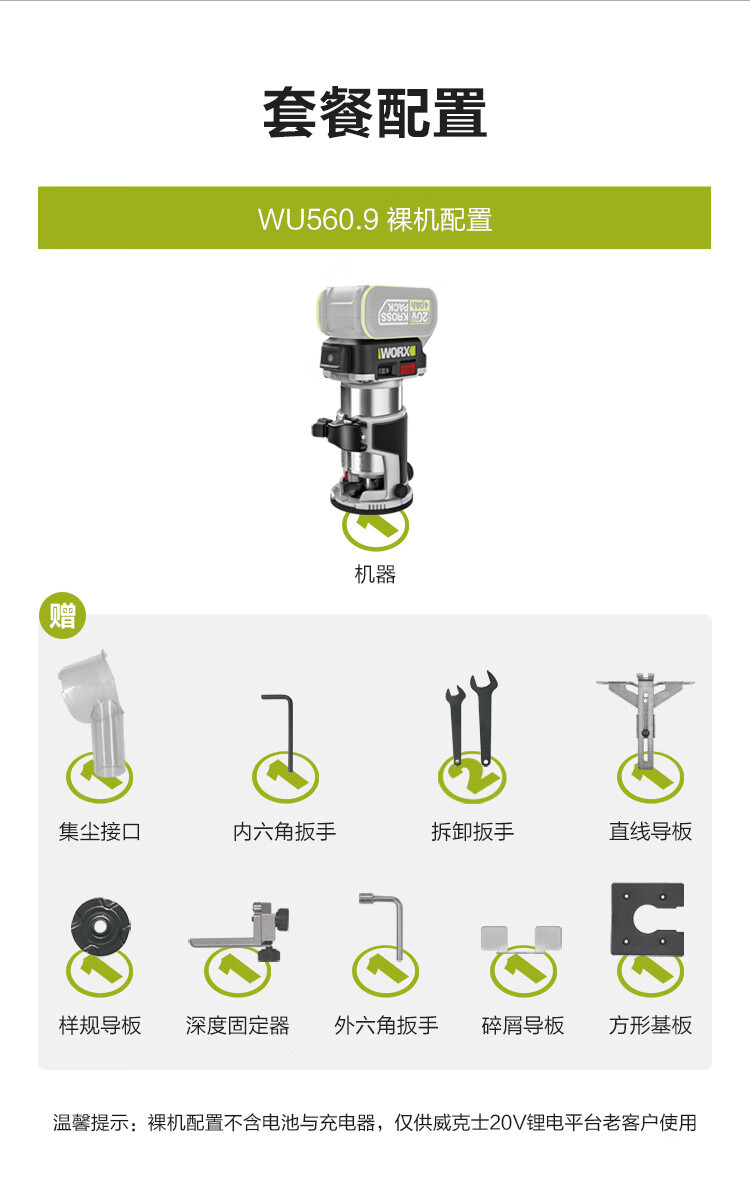 20V litio sin escobillas máquina de corte de borde eléctrica WU560 máquina de ranura de carpintería gong biselado máquina de fresado de madera eléctrica [metal desnudo]