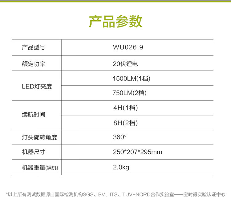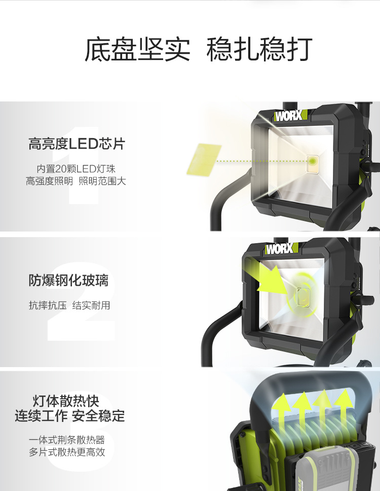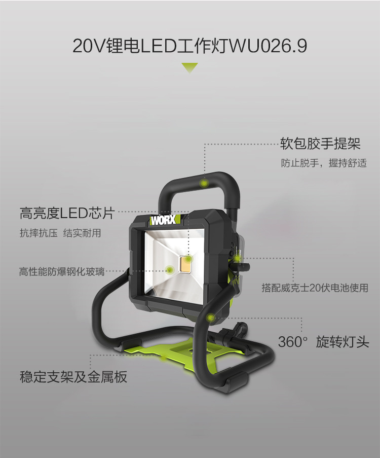 20V litio LED lámpara de trabajo WU026 lámpara de proyección portátil recargable iluminación portátil al aire libre