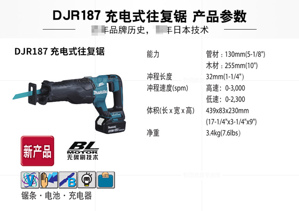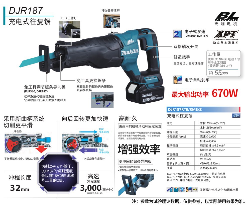 | Especificaciones | Djr 187rme Sierra de ida y vuelta dos electricidad una carga 4.0ah, djr 187rte Sierra de ida y vuelta dos electricidad una carga 5.0ah, djr 187z Sierra de ida y vuelta, djr 187rfe Sierra de ida y vuelta dos electricidad una carga 3.0ah, djr 187rge Sierra de ida y vuelta dos electricidad una carga 6.0ah |