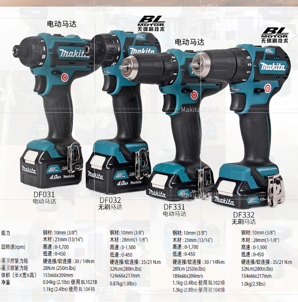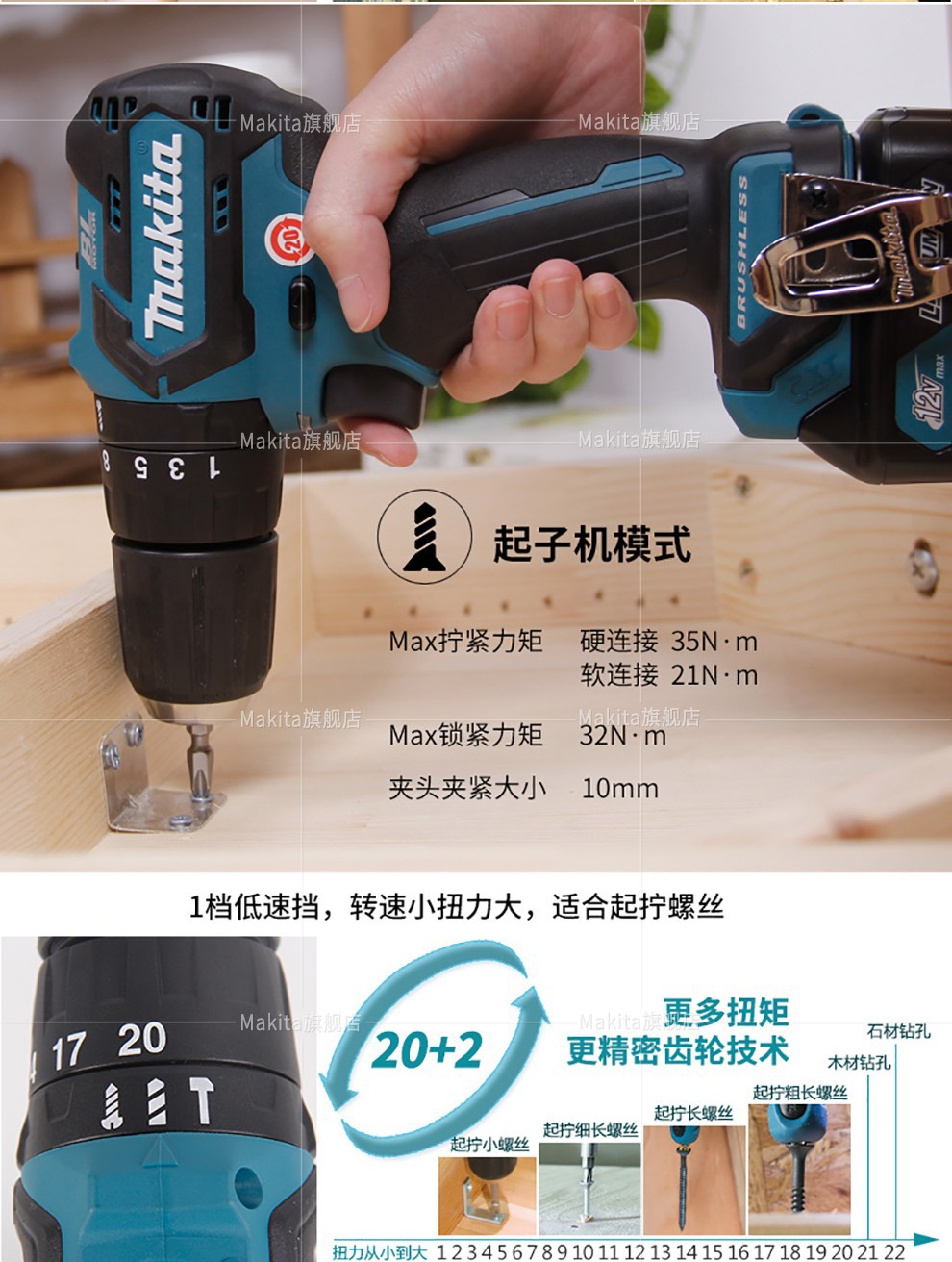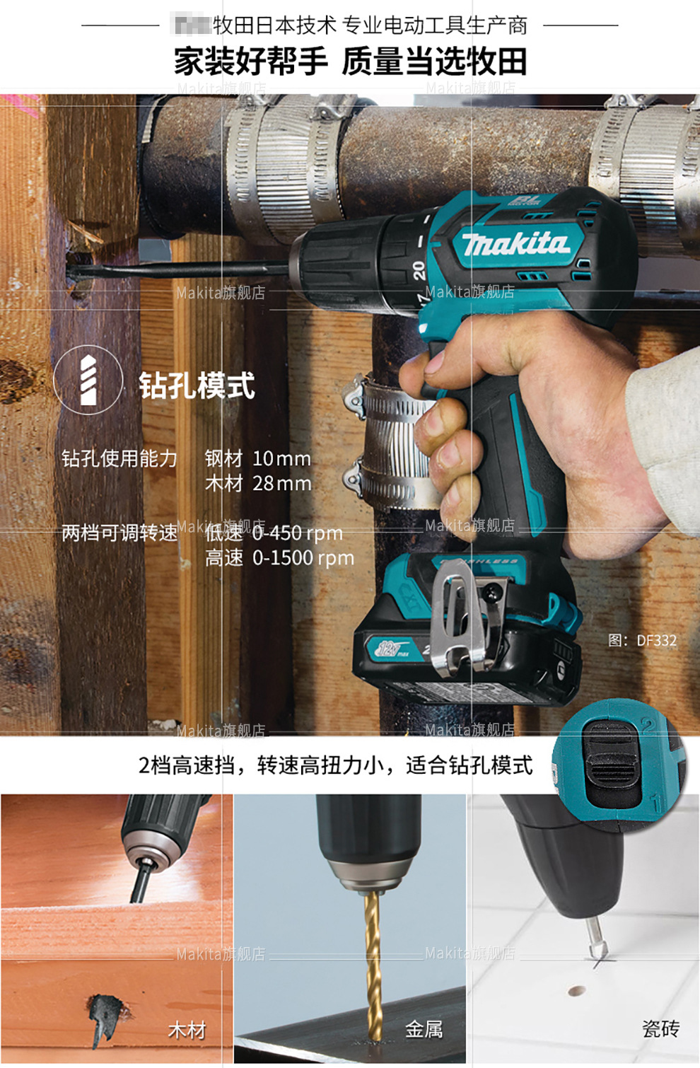 12V batería de litio recargable perforación eléctrica perforación motor destornillador eléctrico sin escobillas DF332 eléctrico