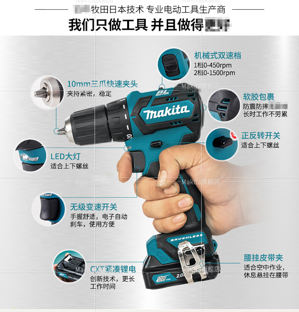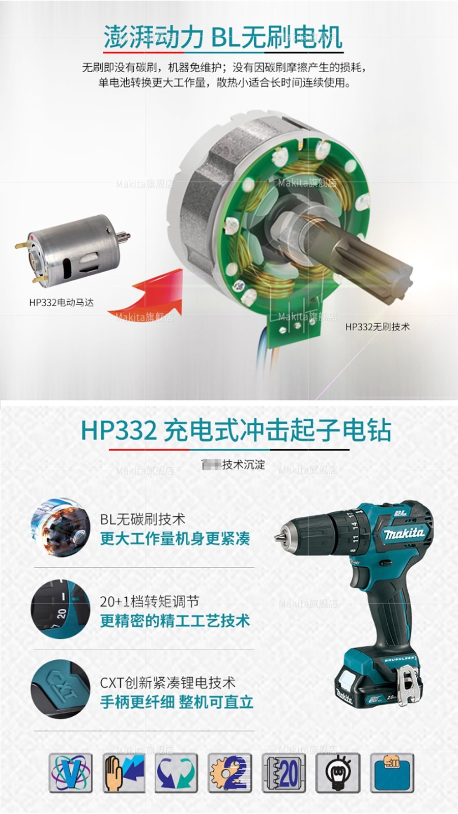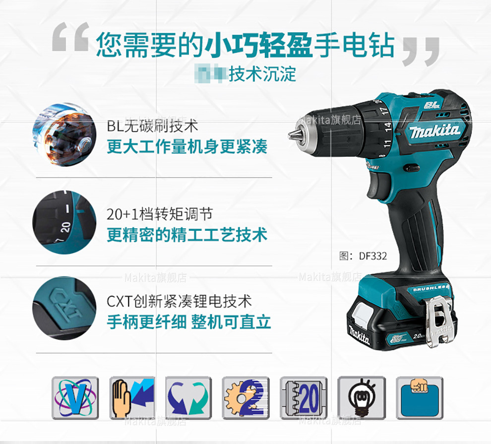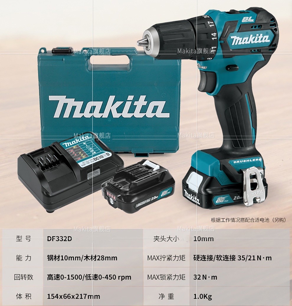 12V batería de litio recargable perforación eléctrica perforación motor destornillador eléctrico sin escobillas DF332 eléctrico