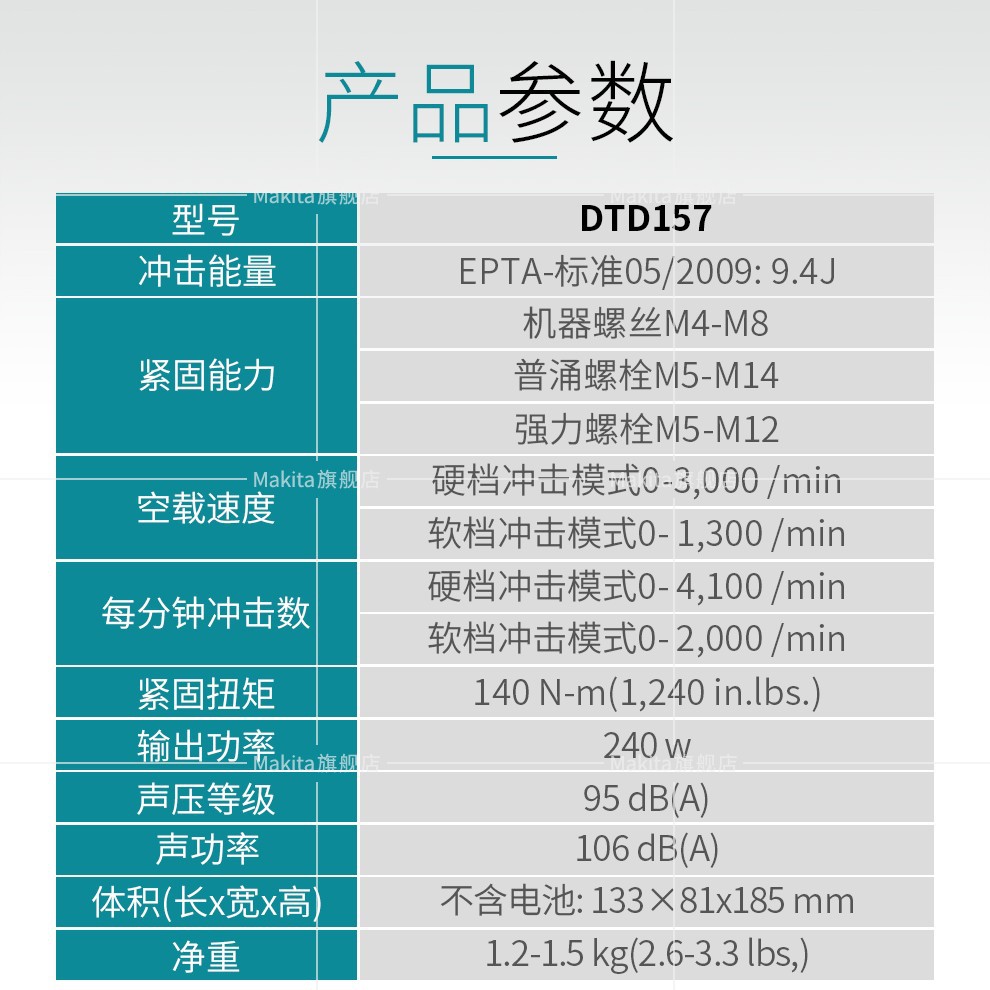 | Modelo | DTD157STJX driver doble carga lenta eléctrica 5.0ah, DTD157SX1 driver 2.0ah y 5.0ah, DLX2414SAJ taladro + driver conjunto 2.0ah, DTD157Z metal desnudo sin cargador de batería, DTD157SX1 driver doble carga eléctrica 2.0ah |