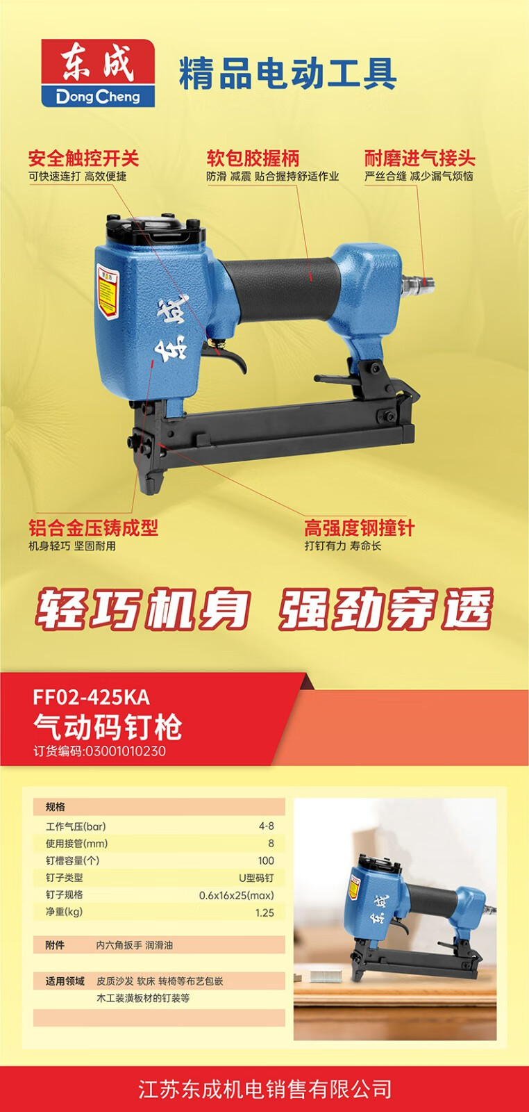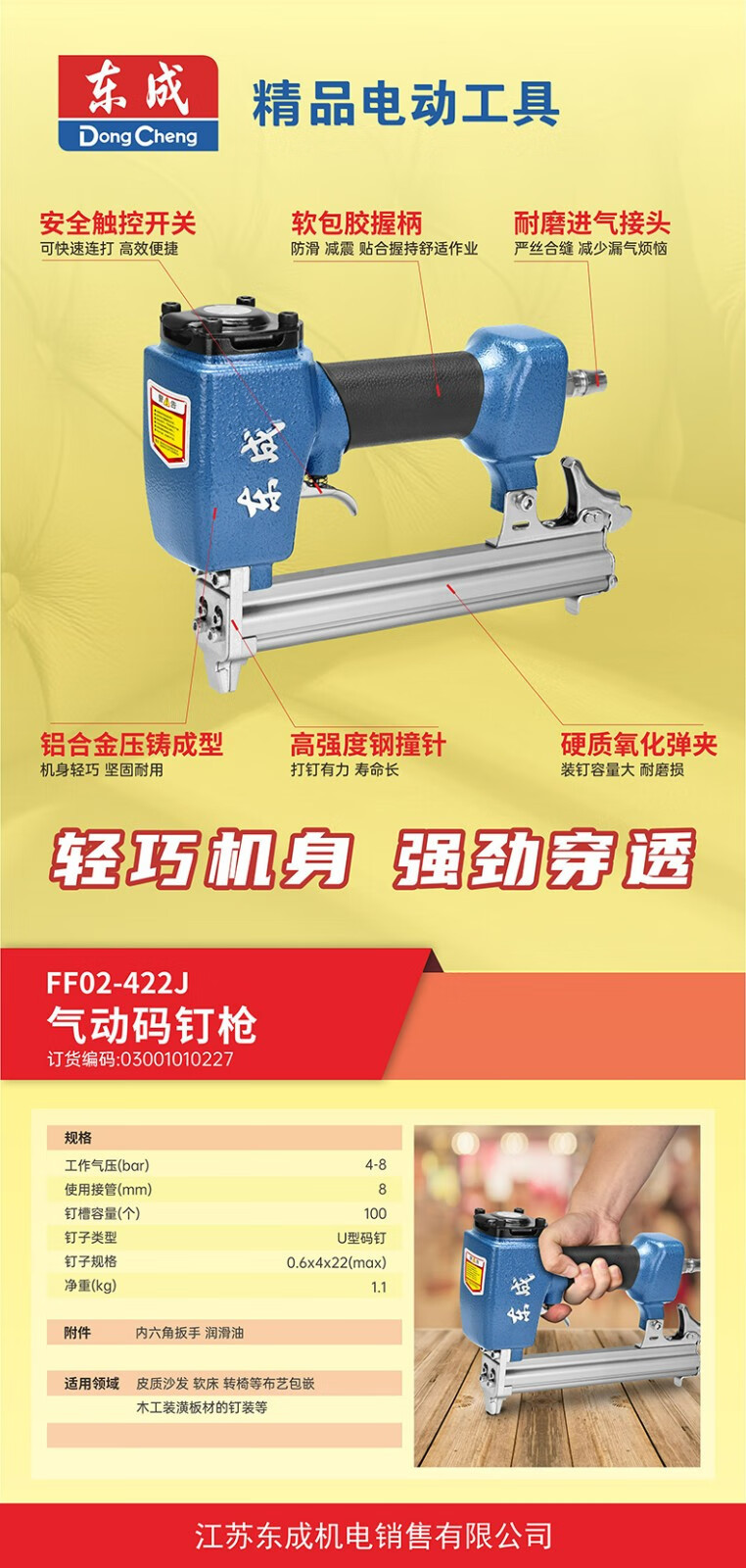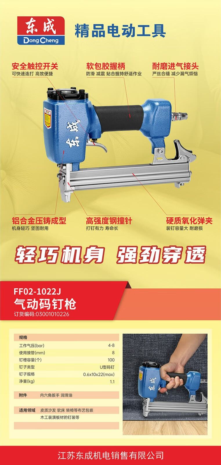 Dongcheng pistolas de clavos neumáticas en forma de U sofá tela de cama suave incrustada madera decoración FF02-440K