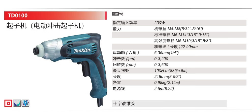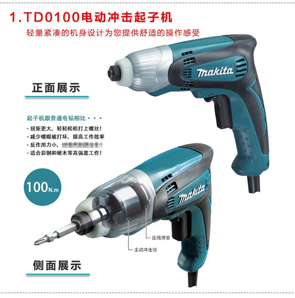 | Modelo | El destornillador de impacto td0100 está estándar en la fábrica, el destornillador de impacto td0100 + 31 cabezas de lote, el destornillador de impacto td0100 + 32 cabezas de lote. |