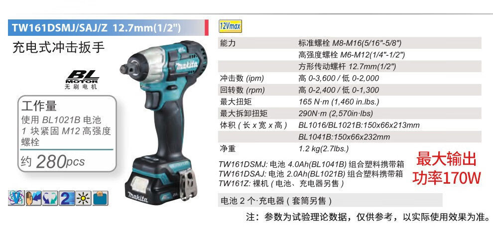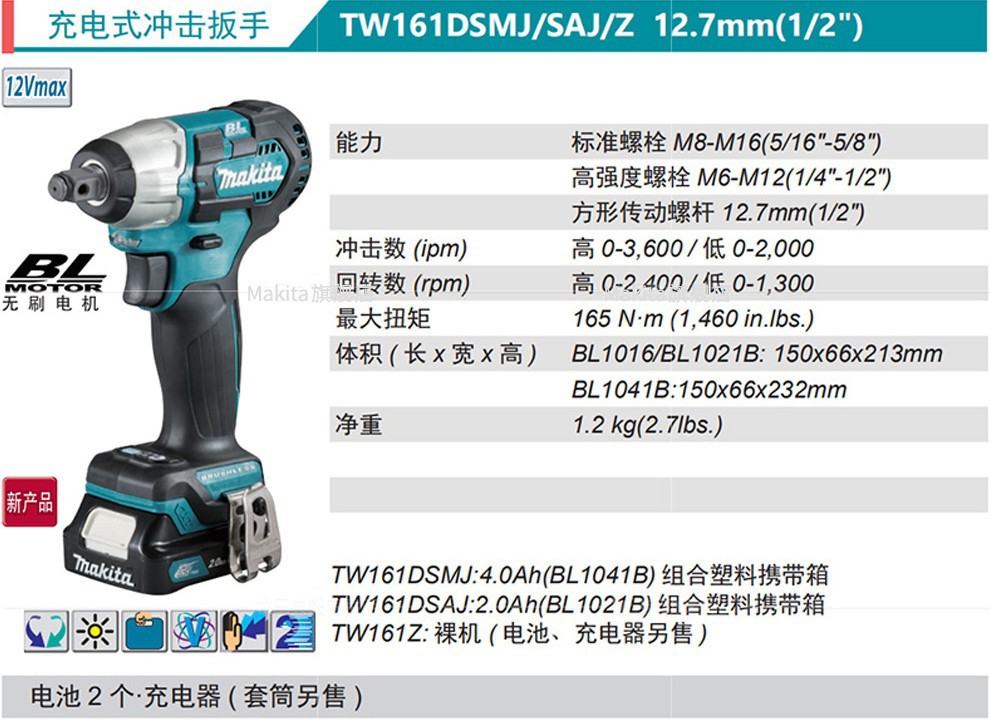 Llave de carga 12V japonesa TW161 Llave de impacto Llave de impacto de litio Herramientas eléctricas TW16