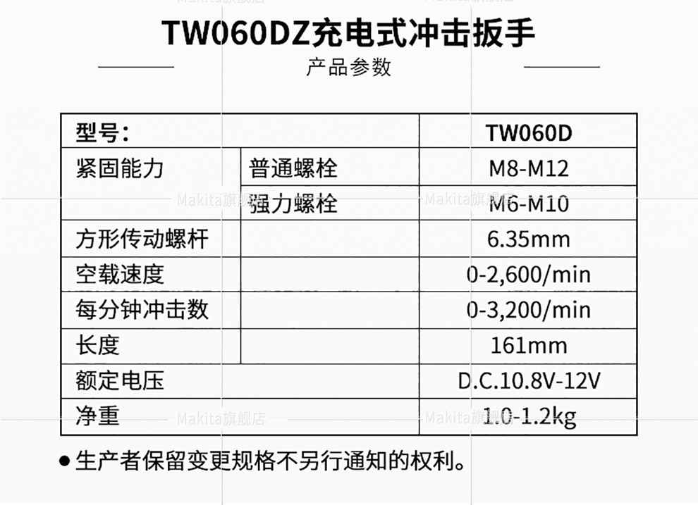 | Modelo | Llave de impacto TW161DZ Bare Metal, Llave de impacto TW161DSAJ carga rápida eléctrica dual 2.0, Llave de impacto TW161DSMJ carga rápida eléctrica dual 4.0, Llave de impacto TW060DZ Bare Metal, Llave de impacto recargable carga rápida eléctrica dual 2.0, Llave de impacto recargable carga rápida eléctrica dual 4.0 |